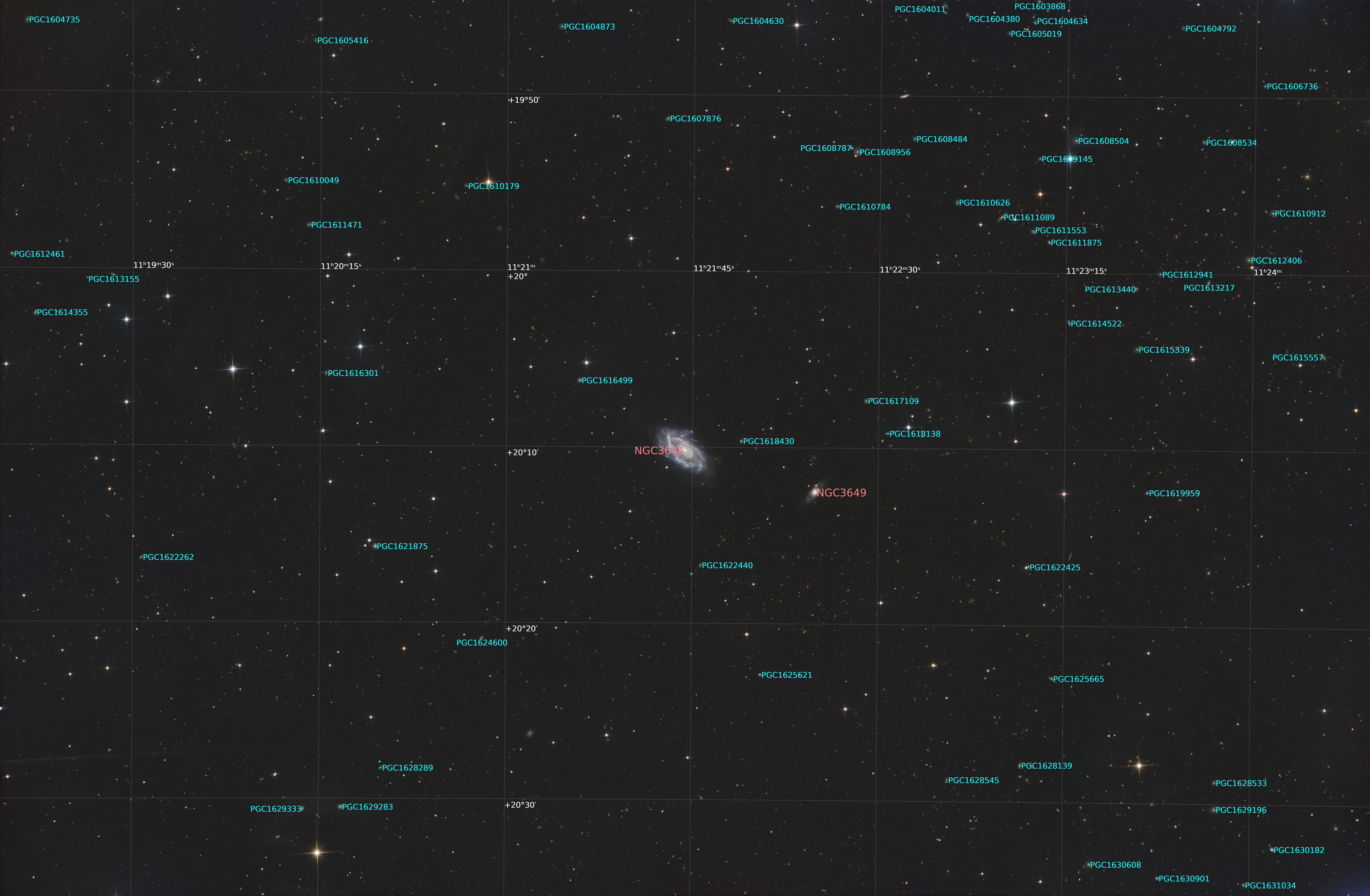 Salut Dernier shoot de la période NGC3646 avec 44 poses de 240Secondes au T350. Pendant cette période, j'aurais bien avancé dans la liste de Seb👍: encore quelques unes à mettre à mon tableu de chasse... Place à la crop (j'aime particulièrement NGC4649 avec ses faux airs de Saturne): la full: et la version annotée: A vos commentaires a+ Serge