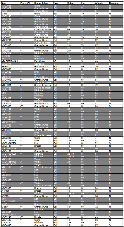 Et oui elles ne sont pas simples ces galaxies de l'Hydre ! Celles notées dans les SCP doivent être les plus lumineuses, j'ai réussi à les toutes les avoir pour l'instant, même si à cette hauteur elles ne sont pas très gratifiantes (je me suis arrêté à celles sous la Coupe, il me reste toute la partie Est à explorer). Ça doit beaucoup dépendre de l'atmosphère et en effet de la présence ou non d'une ville dans la direction. Pourtant je n'ai pas l'impression d'y aller tant que ça au "pas de course", je reste au moins 4-5 minutes par galaxie. Et beaucoup plus quand elle ont des détails intéressants qui apparaissent. Mais c'est très rare, et généralement ce que je perçois en quelques secondes n'évolue pas malgré mon insistance. Je pense qu'au-delà du diamètre, mon ciel n'est pas assez exceptionnel (Bortle 4) pour en profiter. Mais je sais que j'aurai jamais le courage de faire 2h de route pour une soirée d'observation ! C'est ça d'avoir une terrasse trop confortable... En tout cas cette série de nuits claires sans Lune a été un massacre d'objets des SCP, après avoir fini la Grande Ourse mardi, j'ai englouti le Lion mercredi, et hier soir c'est la Chevelure de Bérénice qui a été passée au crible. Avec ces constellations bien hautes je n'ai essuyé aucun échec sur les trois constellations, ça en fait des galaxies à ajouter à mon tableau de chasse ! J'ai pu découvrir hier l'incroyable NGC 4565, avec sa bande d'absorption et son élégante forme fuselée. Et j'ai bien vu la petite cerne sous l'oeil de M64, elle m'avait échappé l'an dernier, et là elle m'est apparu tout de suite sans que je m'y attende. Ça progresse quand même !