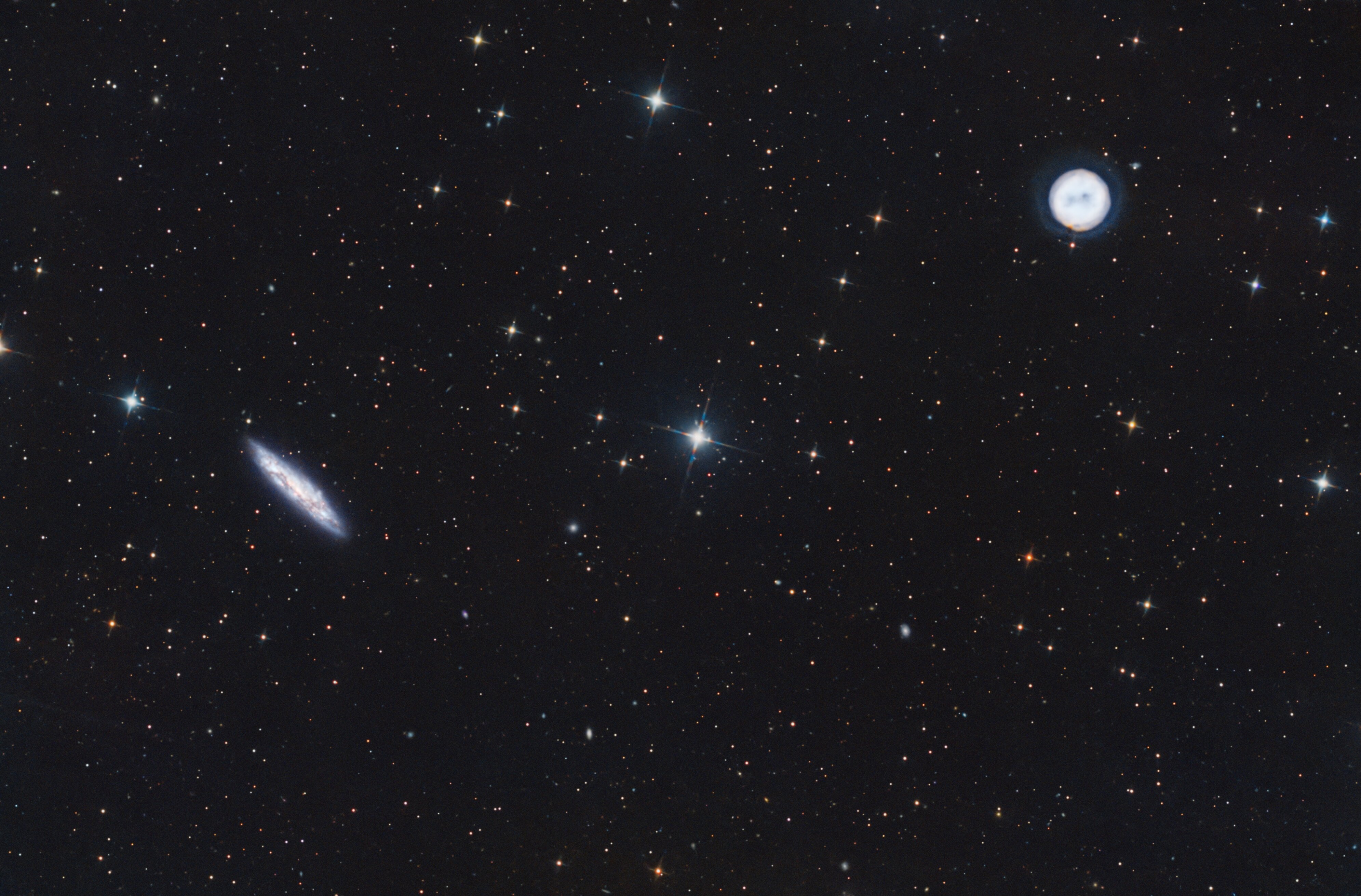 pas mal du tout ta version de cette belle galaxie mieux que la mienne, je pense; moins saturé au coeur en tout cas! par contre, je trouve qu'elle a un peu trop de "denoise" , je sens de l'artefact en son sein a+ stéphane -