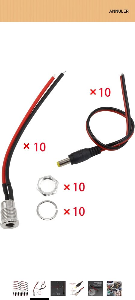 Bonjour à tous, je vous contacte car j ai un soucis avec ma monture. Celestron a eu la bonne idee de mettre une "sécurité " sur son port d alimentation femelle constitué d un pas de vis pour bloquer la fiche mâle. Le soucis est qu avec le froid, je suppose que le tout se contracte et en voulant enlever mon alimentation, le port a "tourné " avec ma fiche mâle et depuis ma monture ne fonctionne plus. J ai donc démonté le cache et j ai constaté que les câbles électriques se sont enroulés et se sont par la meme arrachés. J ai essayé de ressouder tout ça avec un résultat sur le moment concluant mais, apres 2 sorties, ma monture ne fonctionne plus à nouveau et j ai donc constaté que ma soudure n avait pas tenu. Je cherche donc a remplacer le câblage électrique avec sa fiche par du neuf. Hors, impossible de trouver la piece (quoi si, aux USA pour 30 dollars pièce, mais l entreprise ne repond pas...). La prise est du 5,5 X 2,1 5A mais je ne sais pas si il faut que je fasse attention a d autres caractéristiques pour avoir la bonne piece et ne pas tout flinguer. J ai deja eu une reponse de Medas pour la réparation, ils n expédient pas la piece, il me faudrait envoyer toute ma monture pour qu'ils puissent eux la réparer, rien que l envoi est plus cher que la pièce... Je ne sais pas si je suis tres clair mais qui quelqu'un a deja eu un soucis analogue et a une solution ce serait super. Je mets en photo le port de base que je ne trouve pas (sauf aux USA comme indiqué) et ce que je pensais prendre pour réparer tout ca