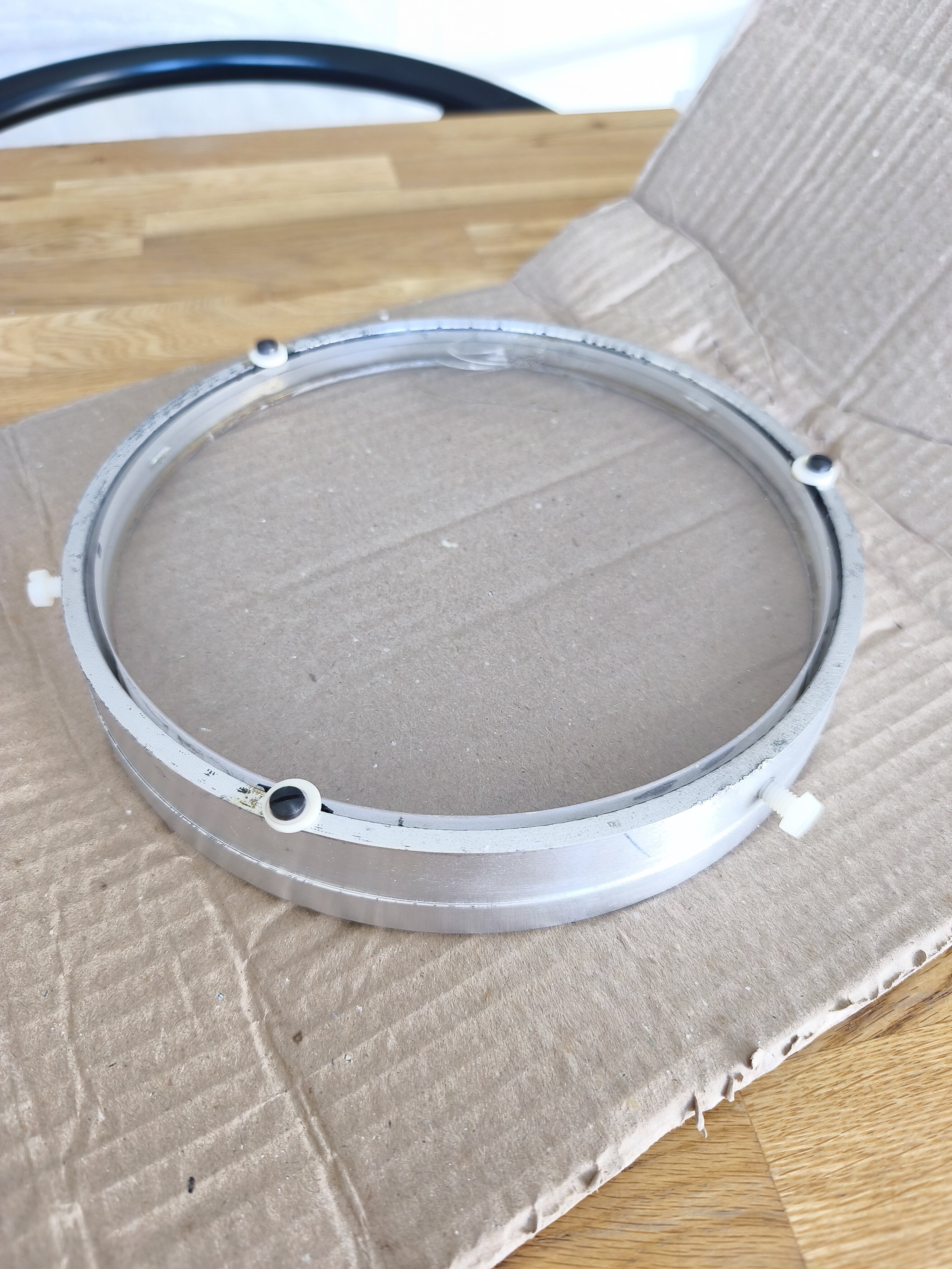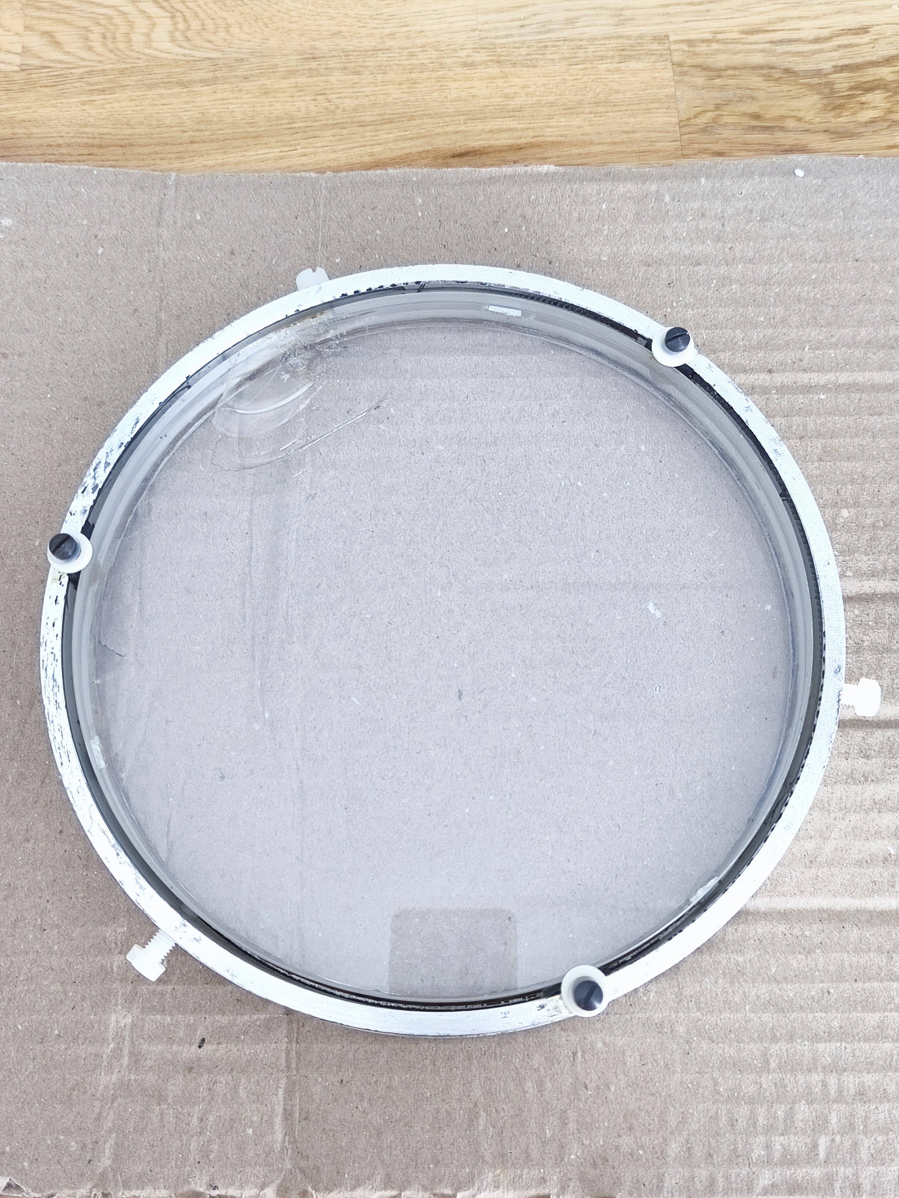 Salut le club J'ai envie de partager cela avec vous. Voici une pièce RARE que j'ai récupéré sur le bon coin. Un Doublet achromatique de 200mm de diamètre. Noté comme FD20 par l'ancien propriétaire. Avec un oculaire j'ai pu faire la mise au point 4m30 derrière. Je le ferais plus précisément avec une feuille blanche est le soleil plus tard, mais cela indique qu'on est effectivement a FD20 plus ou moins. La personne qui me l'a vendu, très charmante, m'a expliqué que son mari travaillait dans un observatoire, il avait une grande collection. Il surveillait les protubérance solaire. Il avait cette pièce en stock. Passionnés d'astronomie et peut-être professionnel, je n'ai pas posé trop de questions, par pudeur quand même. Pas de traitement optique. 3.5 kg a peu près, épaisseur de 37 mm pour les lentilles a peu près. La cellule n'est pas d'origine. Le Flint repose sur la cellule (il y a un joint d'amortissement entre le verre et la cellule de matière non identifiés). Les lentilles sont calé a 120° en espacement et radialement. Le Crown lui est maintenu par des rondelles molle, par les visses vissé sur la cellule, je ne me risquerait pas a mettre le doublet a l'envers. -