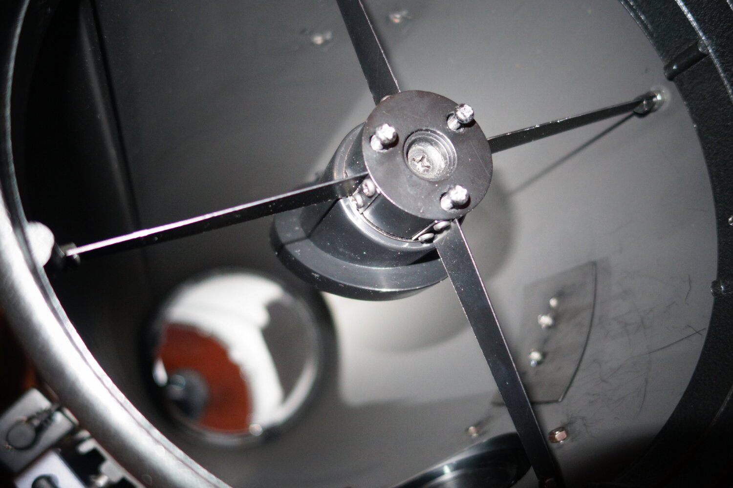 Bonjour Je tente de remettre en route un Newton (Bresser 200/800) qui a sans doute beaucoup voyagé mais pas dû servir beaucoup pour l'observation et encore moins pour la photo depuis longtemps. Il y a un gros problème de collimation et autant je parviens à me débrouiller sur mes Dobson jamais trop décollimatés, autant je galère sur celui-ci. La faute est sans doute dû au secondaire qui est mal fixé. Avec l'oeilleton de collimation, il n'est pas du tout rond et l'araignée est décentrée. J'ai tenté de jouer avec les trois petites vis mais je n'y arrive pas. Je me suis aperçu que je pouvais tourner le miroir secondaire à la main en tournant le cylindre sur lequel il est. Je suppose que ce n'est pas normal. Le réglage avec les 3 petites vis est inopérant si le machin bouge. Deux questions du coup : 1. Comment le repositionner correctement ? Existe-t-il une méthode ou dois-je procéder par essai-erreur ? 2. Comme le fixer ? Est-ce l'araignée que le tien ou les petite fils sur le côté ? La grosse au centre, c'est pour la distance, c'est ça ? PS. Je n'ai pas encore touché au primaire mais il me semble que tant que le secondaire n'est pas correctement fixé, cela ne sert à rien de régler le primaire. Vous me confirmez ?