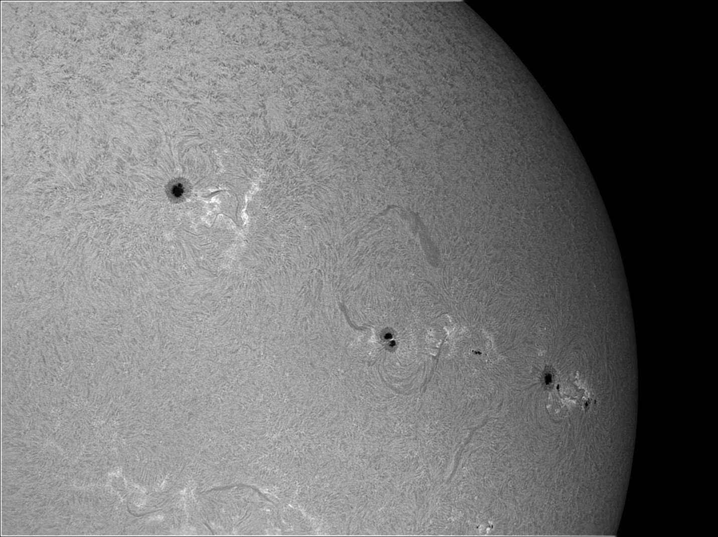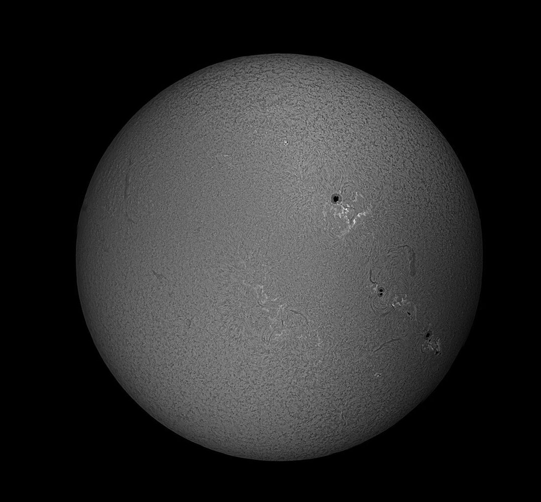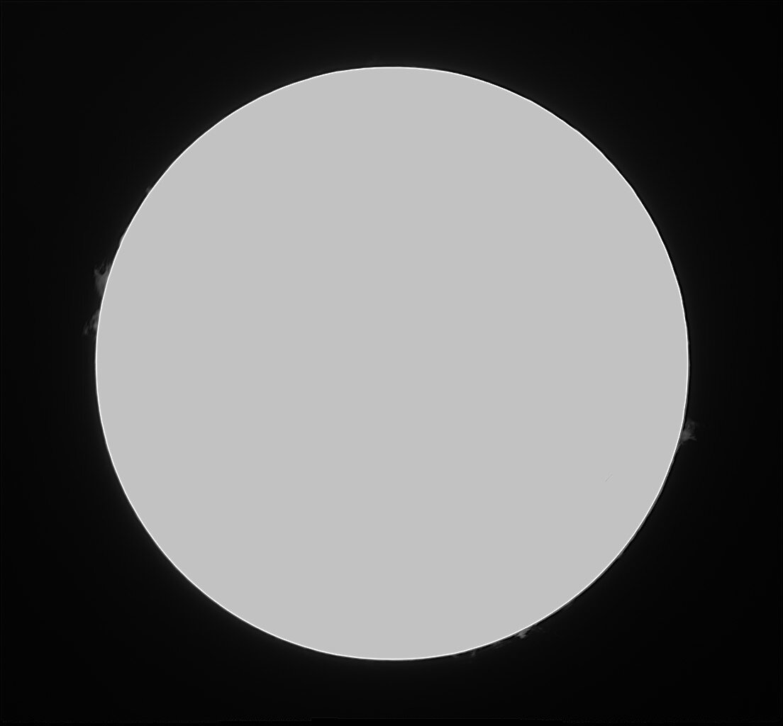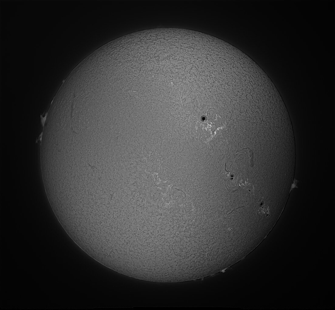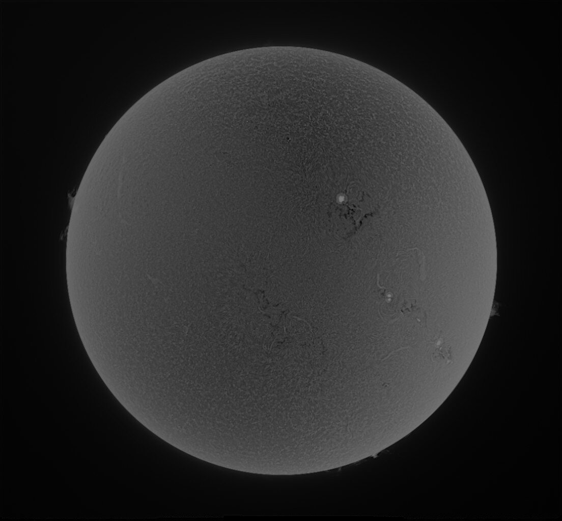 Bonjour Soleil du 19/03 dernier. Lunette 62ED + Filtre Calcium Kline + ASI 585MM. Je tâtonne encore un peu sur les réglages. -