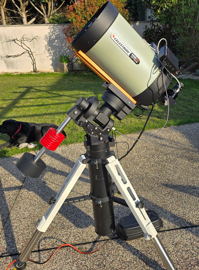 Bonjour à tous ! Je suis un petit nouveau ici, maintenant à quelques années de la retraite. J’ai décidé de me replonger dans l’astronomie, une passion que j’avais un peu mise de côté. Il y a 25 ans, j’avais acheté un ETX 125 que j’ai pas mal utilisé les premières années. À l’époque, je vivais en région parisienne, mais j’avais surtout la chance de pouvoir observer depuis la maison de famille, perdue au fin fond de la Creuse, avec un ciel incroyable. Et puis, avec les années, les enfants, la vie qui s’accélère, j’ai fini par laisser le télescope de côté. Après avoir déménagé en région lyonnaise, j’ai ressorti mon vieil ETX l’été dernier, à l’occasion d’un grand nettoyage du grenier. J’ai constaté que la monture ne fonctionnait plus, mais ma petite dernière de 13 ans m’a posé quelques questions sur l’astronomie. Du coup, je me suis dit que ce serait l’occasion d’aller découvrir le planétarium de Vaulx en Velin que je ne connaissais pas. Là-bas, j’ai entendu parler du club astro du coin, et voilà... le virus m’a repris ! Aujourd’hui, j’ai la chance d’avoir un jardin, un peu plus de temps le soir, et en parcourant les forums, j'ai été bluffé par le matériel et surtout les logiciels accessibles. Il faut dire que je viens de l’époque de l’argentique... Même en banlieue, on peut faire des trucs incroyables. J’ai tenté de réparer la monture de l’ETX sans succès, mais au fond je me suis dit que c’était le signe qu’il était temps de repartir sur de bonnes bases — et d’investir dans une monture sérieuse... je suis assez vieux pour savoir que c'est essentiel Cet hiver, j’ai écumé les annonces sur WA, AS etc. tout en participant aux ateliers pratiques du club pour me remettre à niveau, discuter, affiner mes choix. Confirmation : les télescopes, c’est vraiment mon truc. Et quelle surprise de voir que les Celestron sont désormais plus accessibles qu’autrefois ! Résultat : un C11 EdgeHD d'occasion bien équipé. De quoi refaire mes anciennes observations avec l’ETX, mais aussi me lancer dans l’astrophotographie, un domaine qui m’attire particulièrement (j'ai une certaine maîtrise du traitement du signal et de l’informatique associée). Au fil des occasions, j’ai complété le tout avec une bino Baader v1 et plusieurs oculaires, puis acheté une caméra ASI 585 MC en attendant peut-être une 2600 monochrome (j’ai déjà profité d'occasions pour roue à filtres et filtres !) J'ai validé le bazar en visuel, puis monté un mini PC (acheté avant la flambée des prix) que je pilote en Wi-Fi depuis la maison. Je commence doucement à me tourner vers l’astrophoto, mais je rencontre un gros souci avec le réducteur — j’ouvrirai un sujet à ce propos. Il me reste donc à peaufiner la configuration (la configuration de l'EAF dans NINA me fait souffrir, et surtout j'ai plutôt passé ma dernière nuit à observer - quel plaisir avec un tel appareil !) et continuer mes bricolages avant de produire mes premières images. Au plaisir de vous lire !