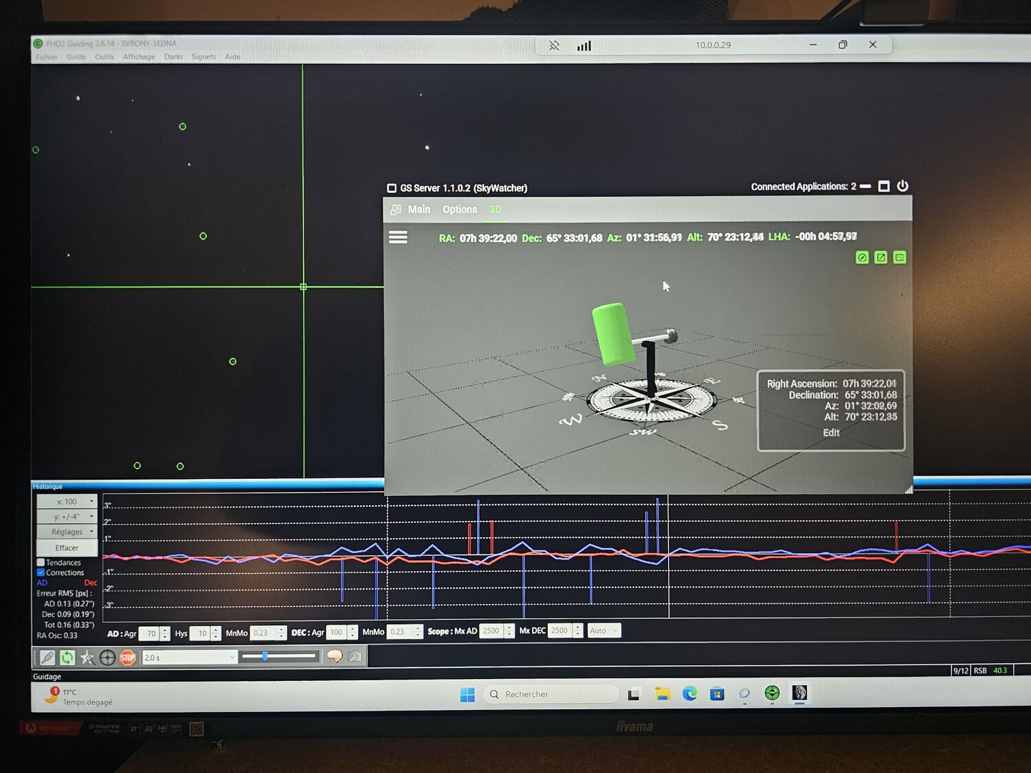 Effectivement a 23h30 ou en mode mosaique Pour info le dernier firmware a encore des defauts de suivit en AZ