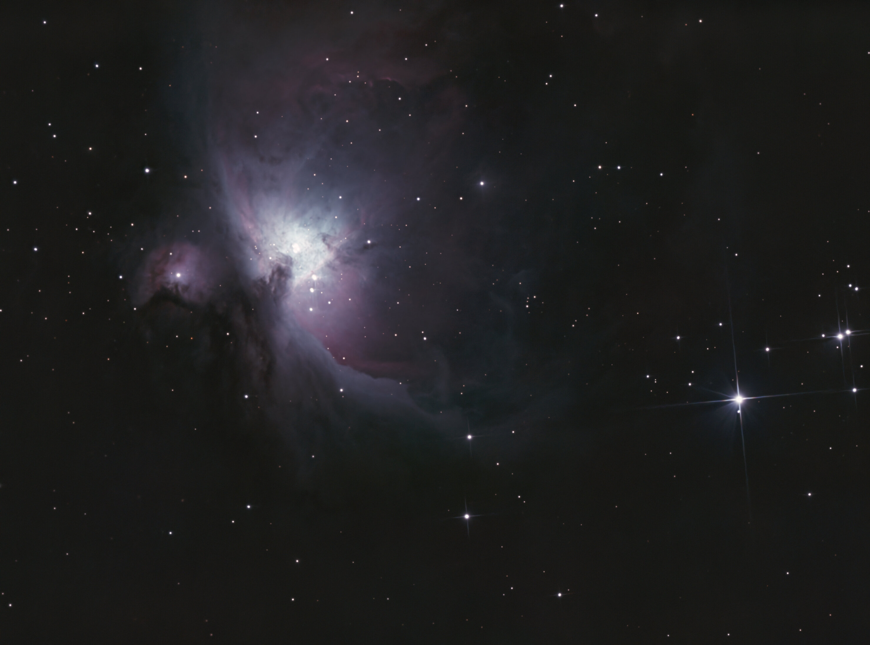C'est un bon début, la prise de vue est correcte, le traitement peut etre largement amélioré. On voit bien la patte astrosurface (pour moi a banir en photo ciel profond) qui te crée du bruit et tu la dynamique. Utilise graxpert plutot. Avec siril. probleme principale : le gradient. tu vois bien que la droite est plus clair que la gauche, peut etre un probleme d'alignement des miroir, mais ca se corige en 1 clique sur graxpert. La nébuleuse d'orion est rose et bleu, donc les couleurs sont pas déconnantes. quand tu la vois rouge sur les photo c'est que le gars a utilisé un filtre, mais en vrai elle est rose. Ton image est juste un peu trop bleu, mais rien de problematique. et ca peut pas se corriger tant que ton gradient est pas corrigé. Si tu poste l'image brut non compressée, on te la traite pour voir.