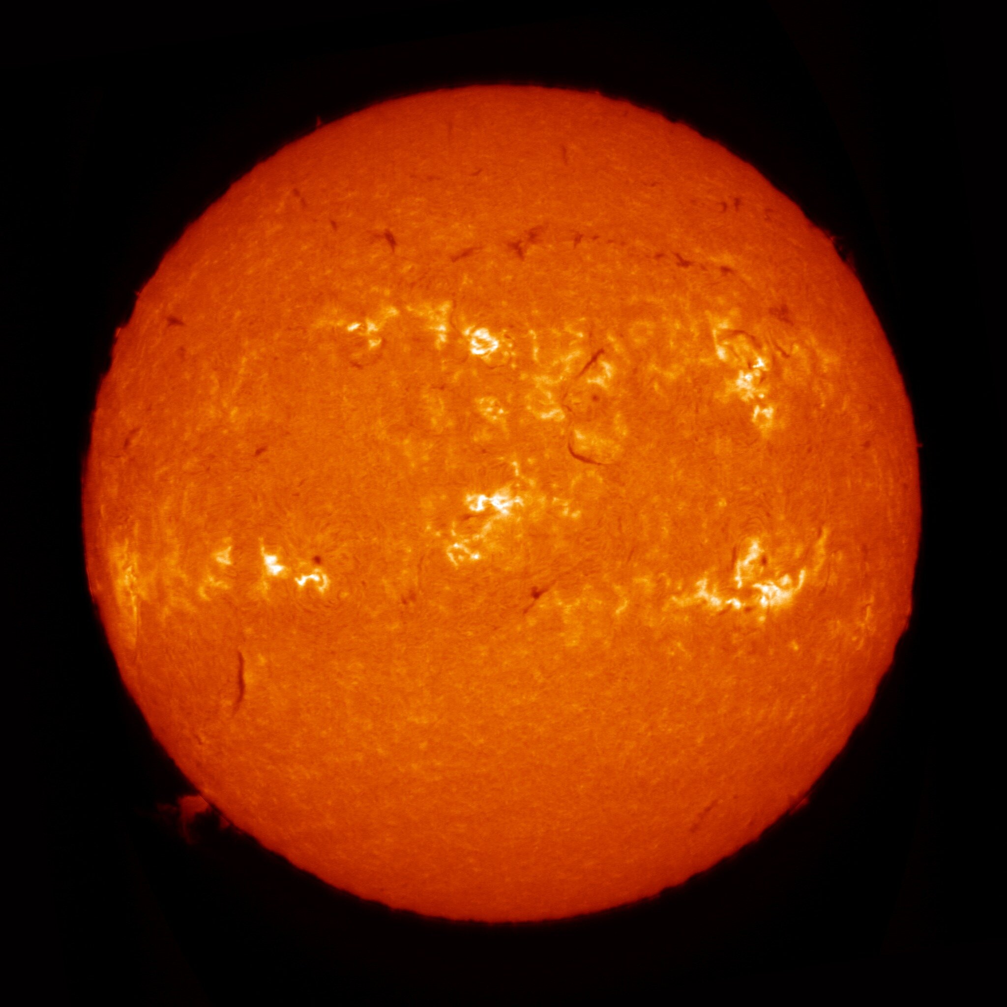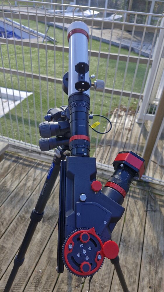Voici mon deuxième essai, réalisé ce midi même. Cette fois, j'ai utilisé un reste de lunt LS40. Le fait d'être à F10 facilite grandement l'acquisition et la MAP. Il y a un ERF de 2" en entrée de lunette. Je l'ai enlevé pour faire une passe sur le sodium et le support de la fente a déjà pris un petit coup de chaud, très localisé. Sinon, toujours le problème de la monture qui n'est pas assez fluide.