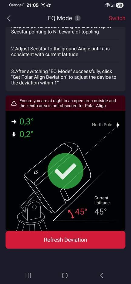 il faut calibrer sur l'equateur celeste, (declinaison entre -20 et +20) ,si tu calibre sur la grande ours, ou a coté de la polaire, rien ne marchera. -