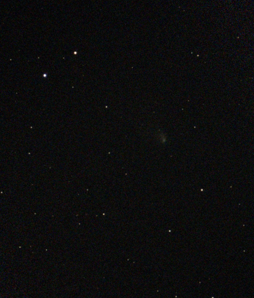 Salut à tous, Pour C/2024 E1 (Wierzchos), j'avais fait une tentative samedi soir dernier (avec les jumelles et la lunette automatique), mais les nuages sont arrivés avant. Elle était "théoriquement" visible depuis mon site. La météo n'a pas permis de retenter avant mardi soir vers 18h30 TU et hier soir (jeudi) vers 18h45 TU avec des ciels totalement dégagés (très bon seeing mardi, moins bon jeudi). Voici ce que cela me donne avec la petite lunette Vespera Vaonis 50/200 (qui a déjà donné d'excellents résultats sur les précédentes comètes plus ou moins brillantes par ailleurs, donc ce n'est pas un problème instrumental...) sous mon ciel "pas trop pollué". Autant dire qu'aux jumelles et même avec une petite lunette 80/100mm compacte, c'est pas gagné... Elle était officiellement à 8,7 sur le site de Gideon van Buitenen. A suivre donc, mais de gros doutes... Bon ciel.