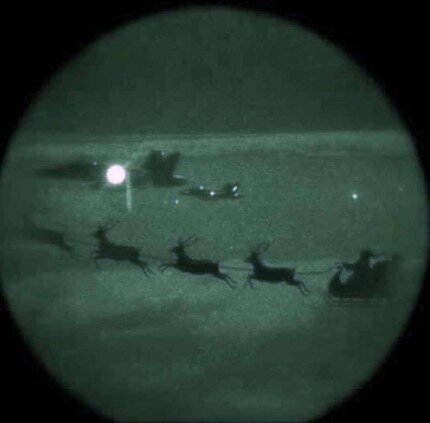 Chers astronomes Joyeux Noël à vous et à votre famille. Pour ceux qui utilisent un oculaire intensificateur OVNI-M ou OVNI-B, prenez le temps d'observer le ciel nocturne : le Père Noël est peut-être plus proche que vous ne le pensez. Cette jolie photo a été prise il y a deux ans par un utilisateur OVNI à travers son oculaire de vision nocturne. -