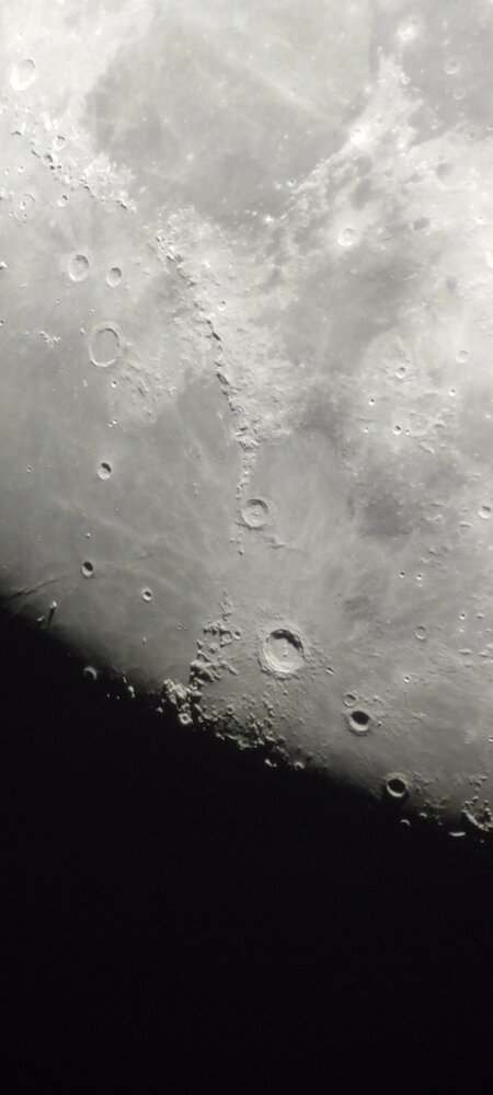 Après 1 mois d'attente, j'ai reçu ma lunette evostar 120 edx, j'aurais bien aimé une Takha mais j'avais pas le budget 😁. En attendant elle est toute fraîchement installée et voici quelques captures d'écran de petites vidéos faites au smartphone. Quand j'aurai le temps, je les traiterai, mais bon pour une 120 c'est vraiment sympa, enfin je trouve. Sur celle où l'on voit le mur, on peut même distinguer (faut zoomer 😊) Rima Brit. J'ai utilisé le nirvana 7mm pour ces vidéos. -