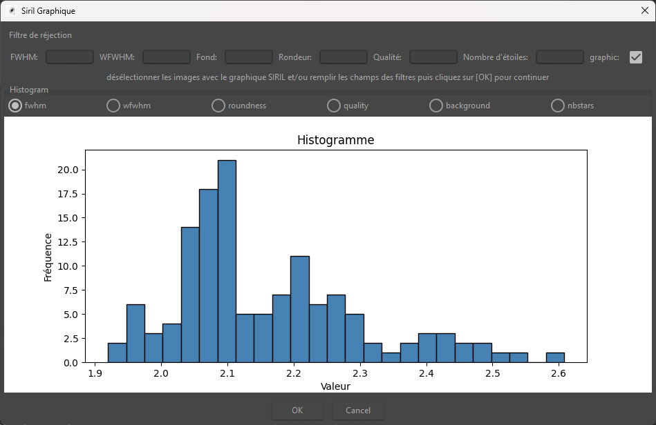 2. @bou-fon j'ai fait une nouvelle version de test dans la branche Sirilic-plugin-siril1.4 : Elle facilite le choix des valeurs de filtre en affichant l'histogramme directement dans la boite de dialogue.