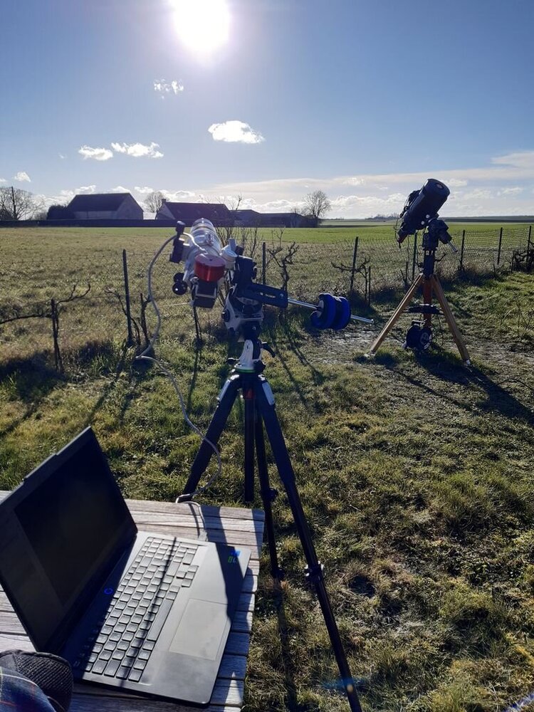 bonjour à tous, un peu de soleil par chez moi aujourd'hui. J'ai pu lui tirer le portrait en mode nomade, la monture habituelle étant en attente (surement vaine) d'un ciel nocturne dégagé A la fs60 muni de son sm40 double stack, BF10, glasspath x1.7 et zwo178mm vers 14h55 HL a+ stéphane -