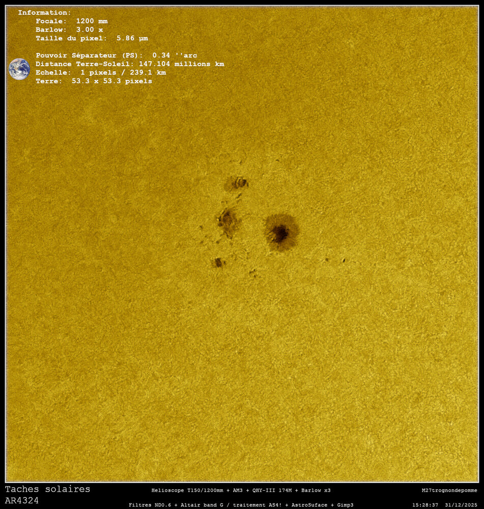 bonjour à tous, A la fs60 muni de son sm40 double stack, BF10, glasspath x1.7 et zwo178mm vers 12h30 HL ce 31 Décembre bonnes fêtes de fin d'année stéphane -