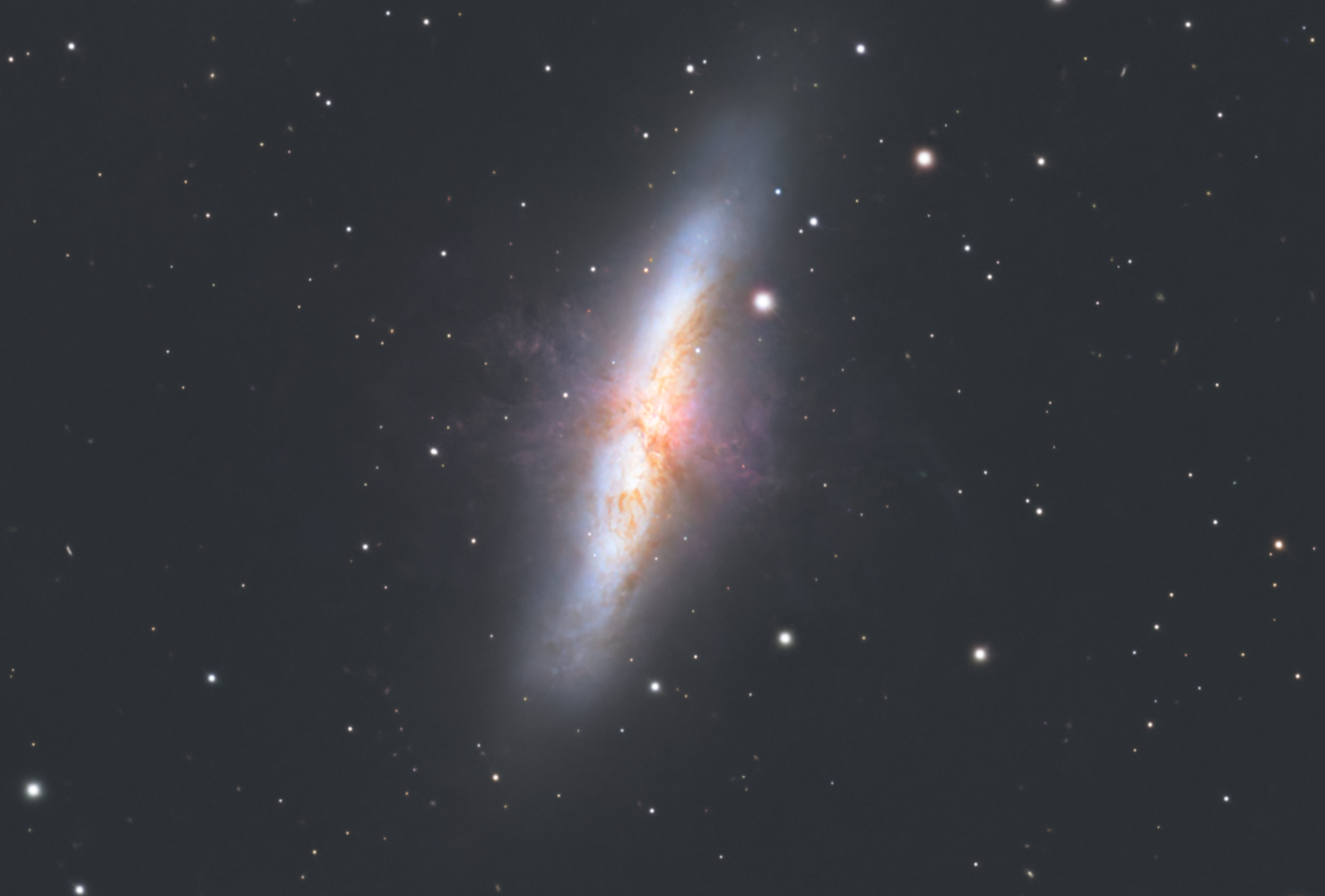 Bonjour tout le monde, Après avoir longuement hésité sur une lunette à grande focale, l'ASKAR 140 APO s'est imposée à moi. J'ai pu la tester la semaine passée où j'ai tout d'abord apprivoisé la bête notamment au niveau de l'équilibrage car c'est un autre calibre que ma 80ED. Ensuite, j'ai passé un peu moins de 3h à shooter M81 et M82 dont voici le résultat avec des zooms sur les 2 galaxies. Au niveau technique: - ASKAR 140 APO + Flattener 1.0x (focale à 980mm) - Monture: EQ6-R Pro - Asiair Plus - Asi2600MC (Gain 100 & Température -10°) - 120mm mini & Tecnosky 50mm - 2h40 de pose (32 subs à 300sec) + DOF - Bortle 4 Qu'est-ce que vous en pensez? Merci -