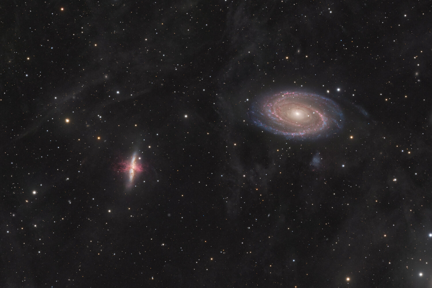 Messier 81, Messier 82, NGC 3077 et IFN (LRHαGB - 25h)