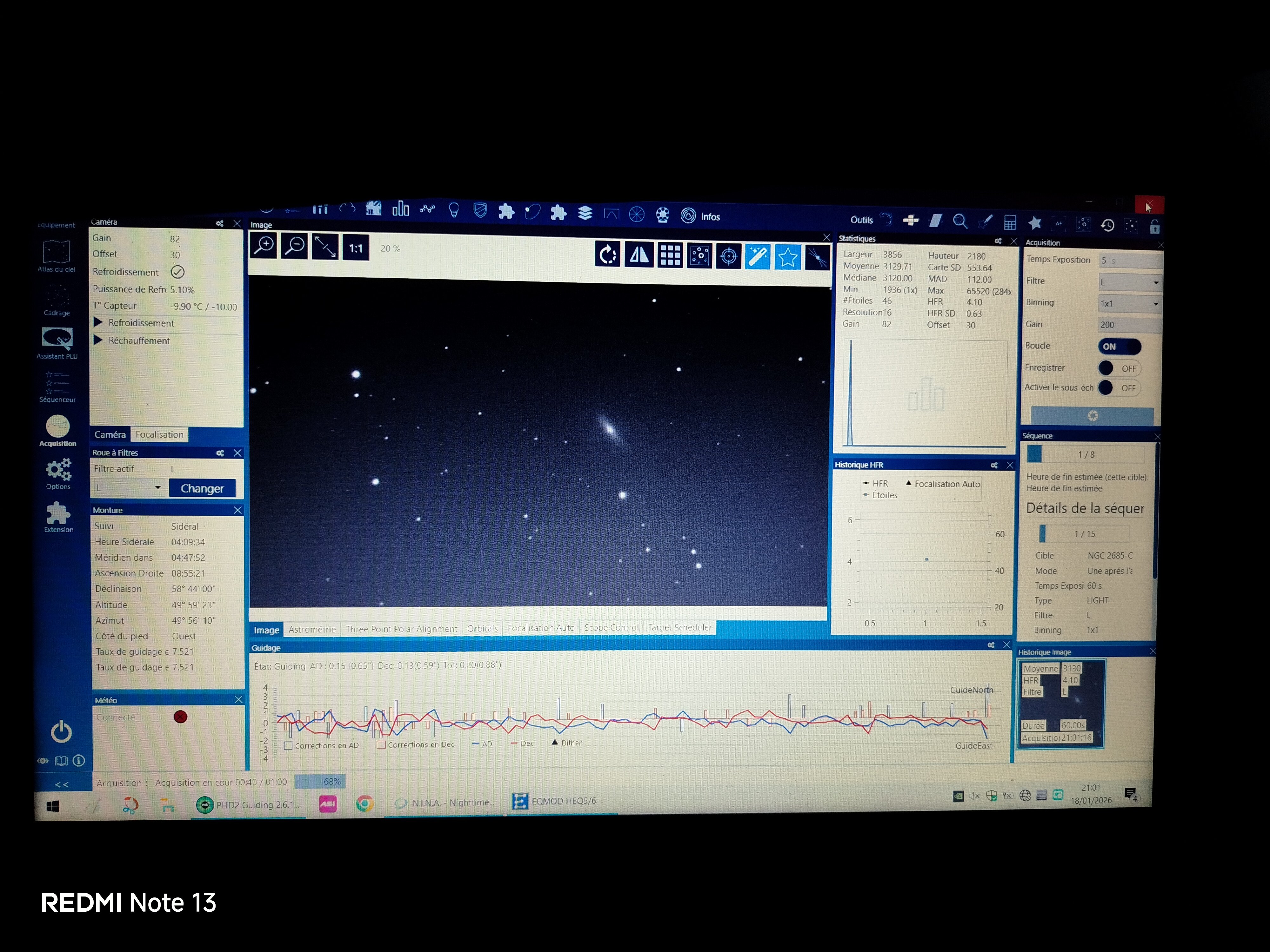Et voilà c'est reparti mon kiki. C8 à pleine focale, 1897mm mesuré en astronomie. J'ai réussi à faire fonctionner Astap sans soucis en jouant sur gain/expo pour avoir assez d'étoiles visibles. Ouf me voilà rassuré. Verdict demain matin pour récolter la galaxie Hélix. 🤘 -