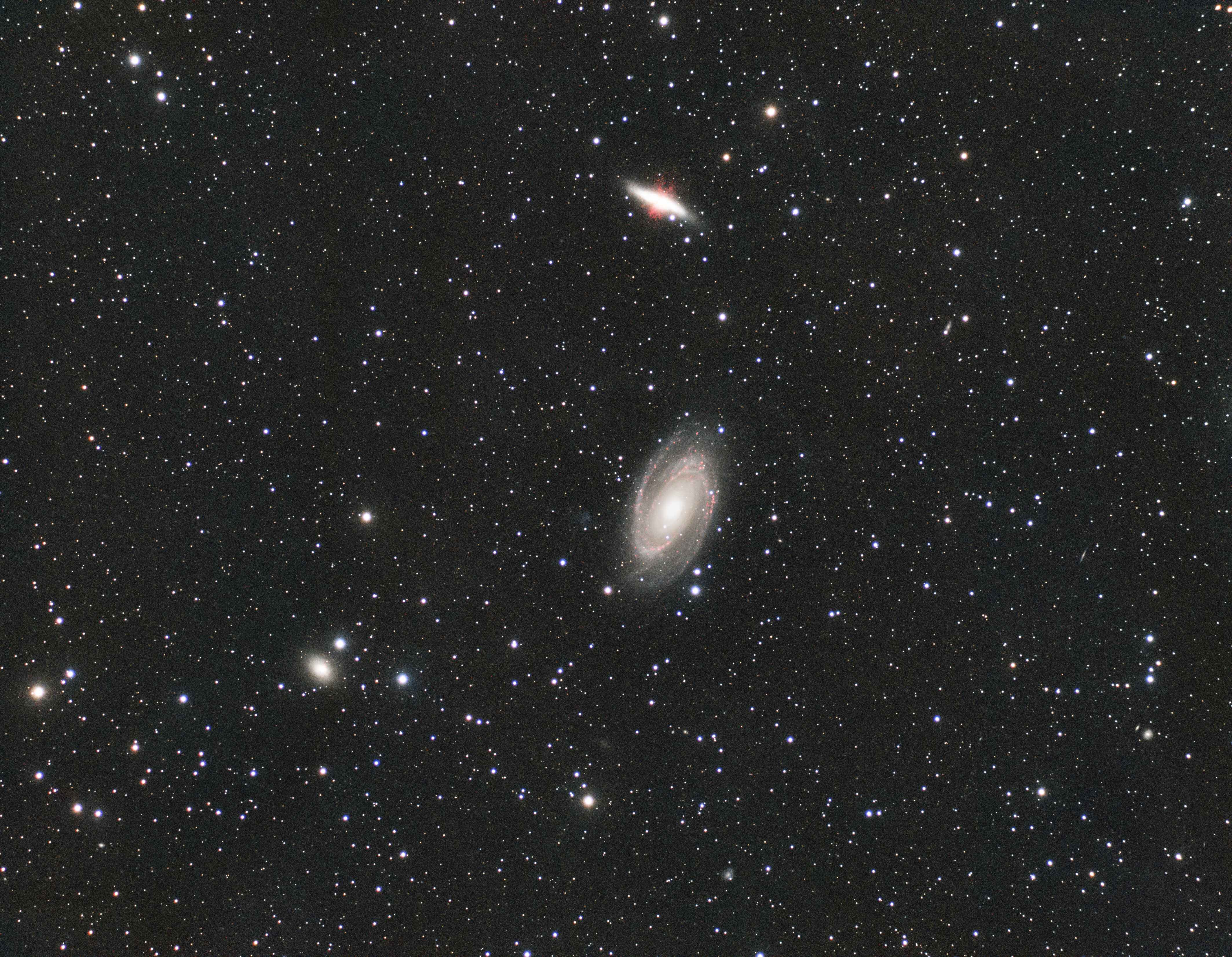2. Bonjour à tous, Voilà une version Ha-RGB de M81 - Bodes Galaxy. J'espère qu'elle vous plaira et que vous pourrez me dire comment m'améliorer. 📆 : 18/03/2025 🔭 : 72ED+red + monture AM5 + Asiair + EAF 🎯 : 120mini en parallèle 📸 : ASI1600MM Pro 👓 : Filtres RGB + SHO 📺 : SIRIL + photoshop H : 300s Bin 1 x20 => 1h40 RGB : 180s Bin 1 x40 => 2h00 20 flats de chaque couche Traintement Traitement de chaque couche séparément. PixelMatch Max(Ha,R) Combinaison RGB Traitement final dans photoshop (courbes, contraste, bruit, netteté...) Je suis plutôt content même si plus de signal aurait permet de mieux maitriser le bruit. Vos avis? Bon ciel ⭐