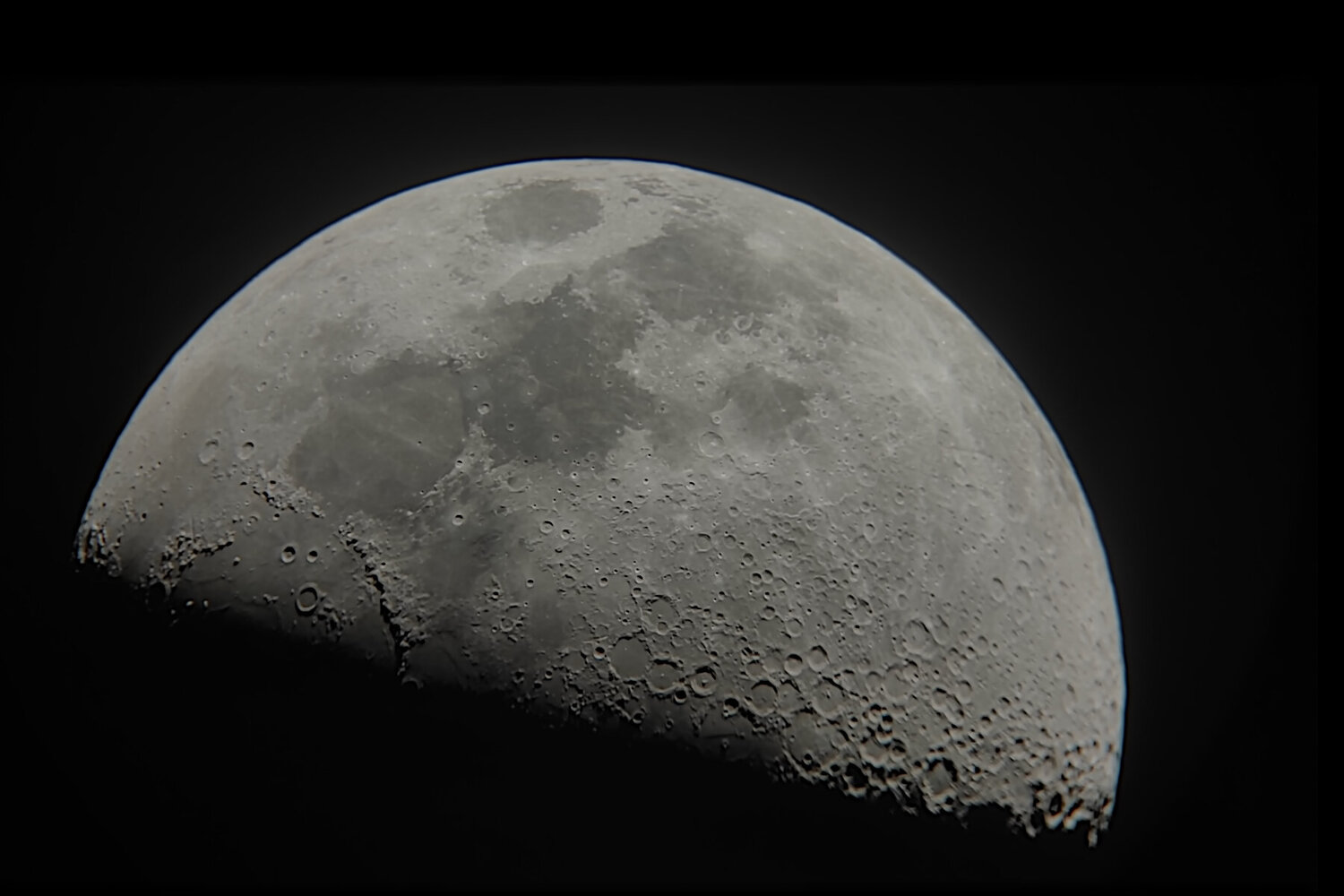 J'ajoute aussi une photo de la Lune provenant également d'une vidéo de 1mn30s avec toujours le C8 sur monture d'origine et un oculaire x-cel LX 25mm. Par contre pour la Lune, je ne vois pas beaucoup d'amélioration par rapport aux captures d'écran que je faisais, mais bon je pourrai sans doute faire mieux avec plus de temps de vidéos. -