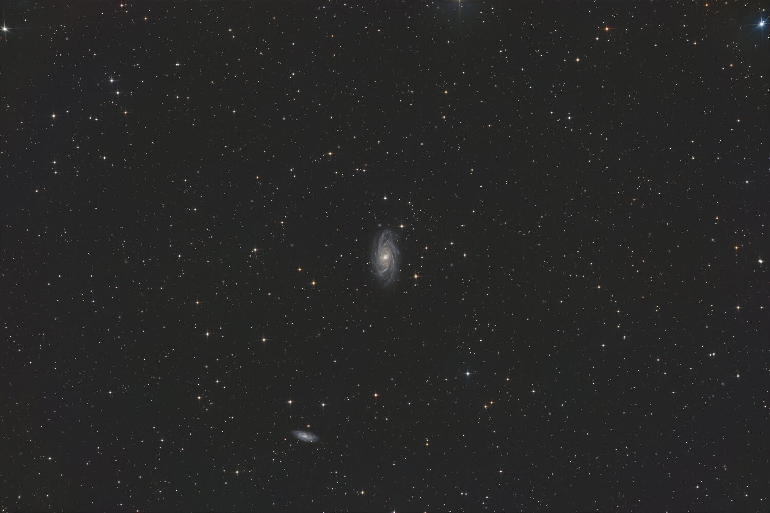 @fcouma, c'est quoi ton Bortle ? Moi sur le même temps au C8 (mais en ville) je n'ai quasiment aucune extension sur cette galaxie... Après poses de 60s seulement. Je suis en train de me demander si je ne devrais pas tester des poses plus longue avec filtre L pour juste augmenter la luminance...