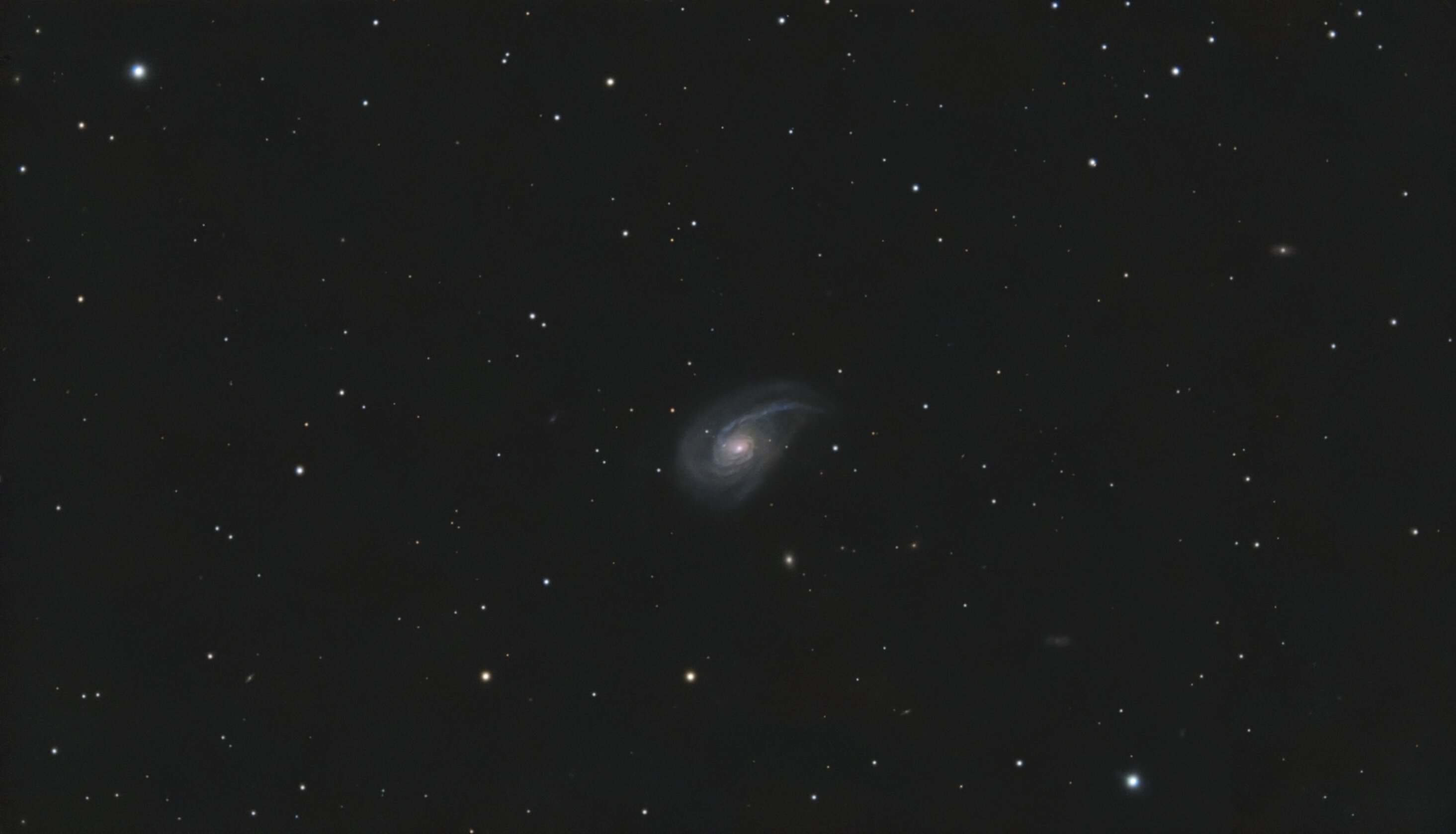 Hello, Voici une image que j'avais mise de côté, en attente de traitement....C'est chose faite maintenant NGC 772 est une vaste galaxie spirale, aussi appelée la galaxie de la Tête de violon, située dans la constellation du Bélier. NGC 772 a été découverte par l'astronome germano-britannique William Herschel en 1785. Les galaxies NGC 770, NGC 772, UGC 1519 et UGC 1546 font partie du groupe de NGC 772. La galaxie NGC 772 est la plus grosse galaxie de ce groupe. En compagnie de NGC 770, la galaxie NGC 772 figure à l'atlas Arp sous la cote Arp 78. NGC 770 et NGC 772 forment une paire de galaxies en interaction gravitationnelle. C'est l'attraction gravitationnelle de NGC 770 qui est responsable de l'allongement du bras spiral sud de NGC 772. SCT Celestron C8 (203/2000) + réducteur Antares 0.63x + réducteur TS CCD47 0.67x focale @ 881mm f/d 4.3 Caméra QHYminicam8 mono Monture HEQ5 kit courroie Rowan Autoguidage via lunette guide 60/270, Asi290mm / PHD2 Acquisition NINA L= 107 x 20s R= 16 x 60s G= 15 x 60s B= 18 x 60s Mode Full Resolution Gain 82 offset 30 T° -10°C Pré-raitement Sirilic/Siril , Pixinsight. SetiAstroSuite Pro. Une brute de 20s filtre L:-