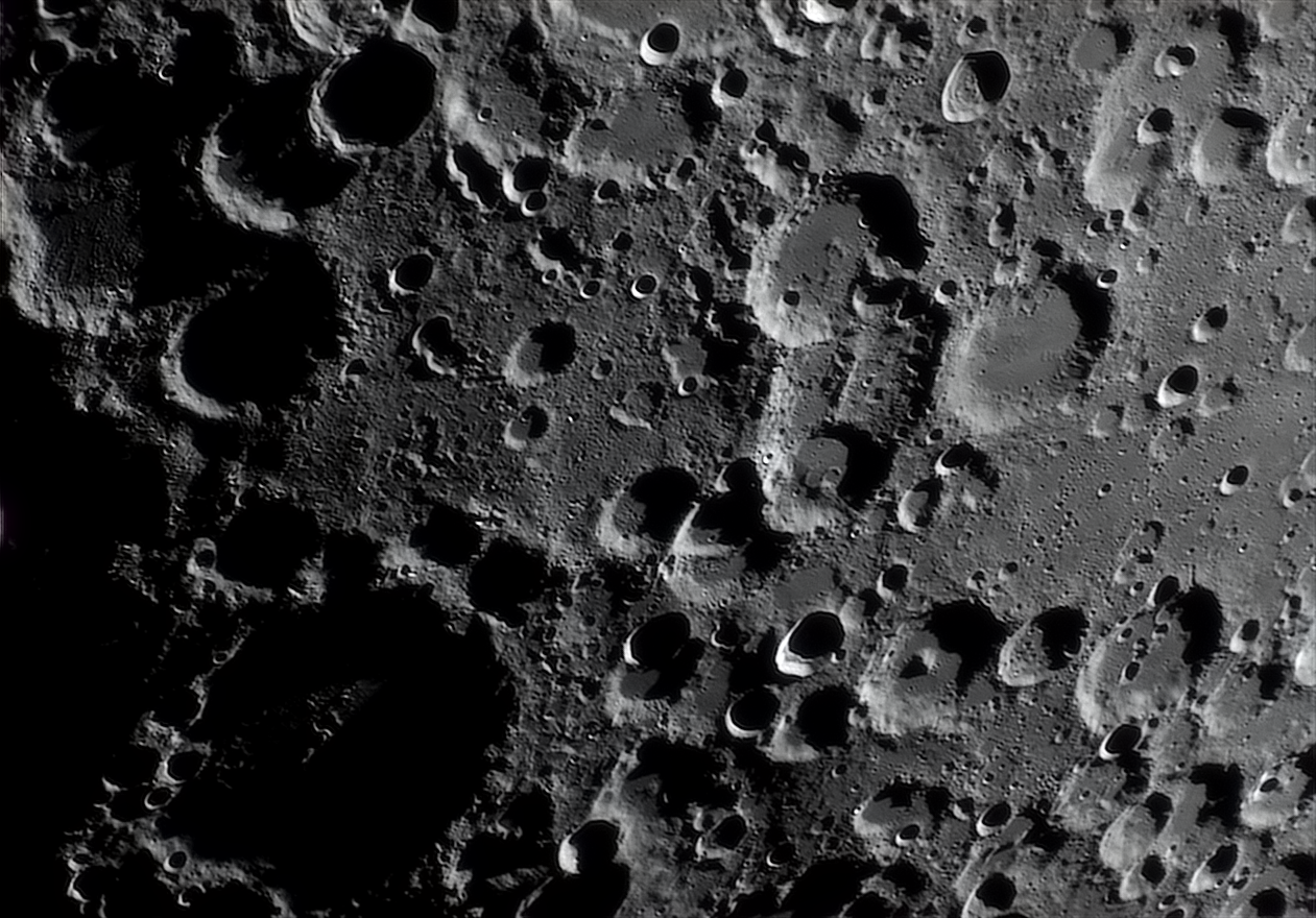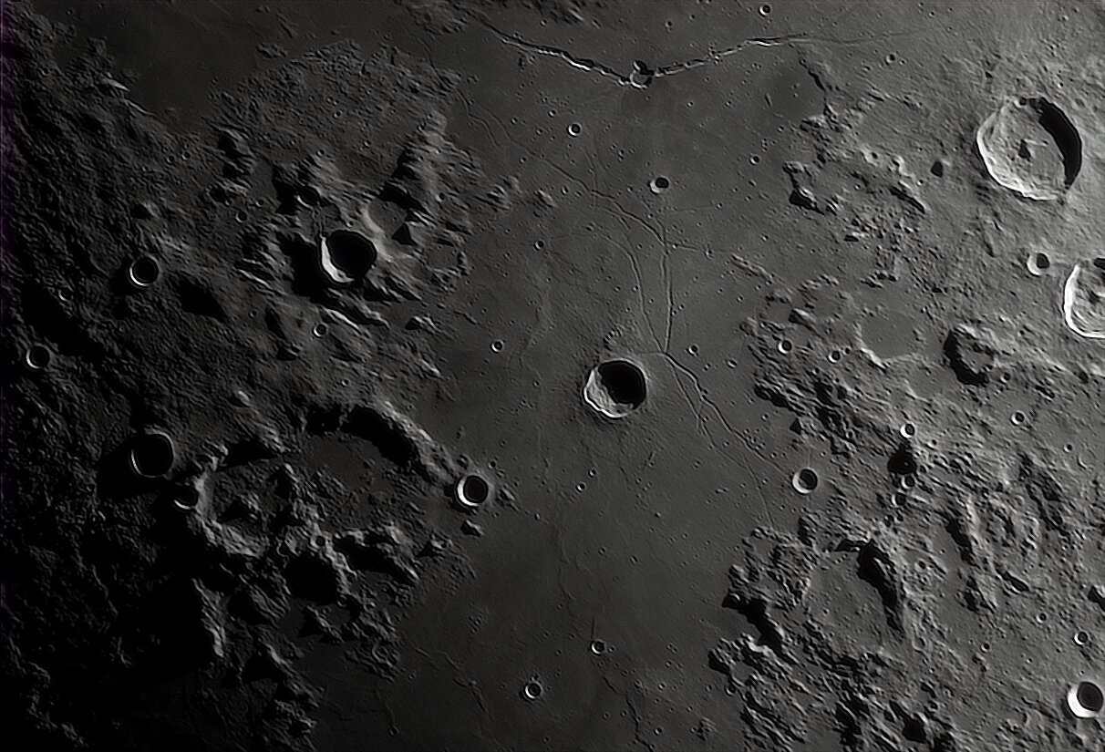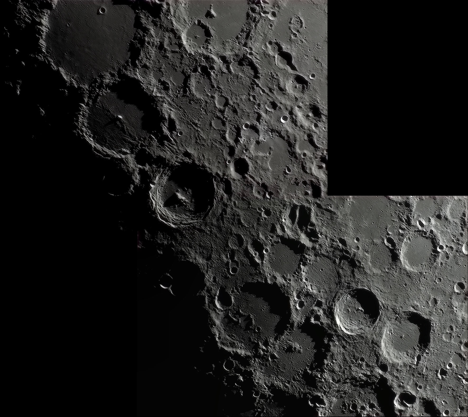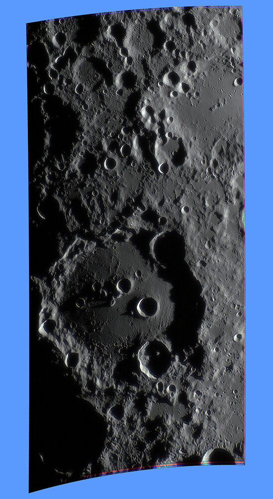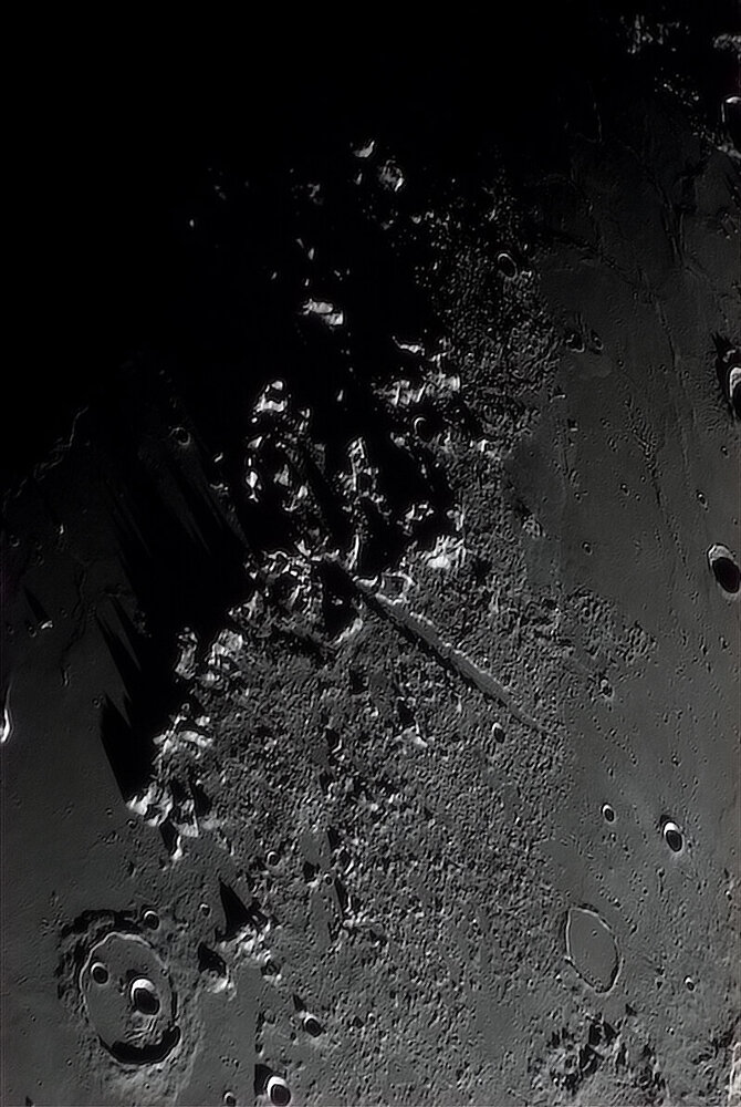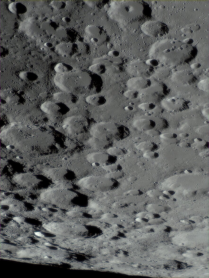 5. Bonjour, Voici quelques images lunaires effectuées les 27 et 28 décembre au Newton 200/1000, Barlow x3, caméra ZWO ASI 224C. Logiciels FireCapture, AS!4, AstroSurface, Gimp. Malgré le froid qui figeait fréquemment l'écran de mon ordi, les conditions étaient très bonnes pour les prises de vue (transparence excellente, turbulence faible et peu d'humidité). Films d'environ 7000 images, autour de 20% conservées. Pose de +-6 ms et gain à 300 environ. Le 27, quelques images proches du terminateur donc assez contrastées. Traitement un peu sombre mais j'aime bien en définitive. Echant 0.214 "/px. Vallée des Alpes : Rima Hadley : Triesnecker : Ptolemaeus à Werner (mosaïque ICE de 2 imgs) : : Autour de Licetus : Le 28 décembre, échantillonnage 0.184"/px. Lune Nord vers Meton : Rima Hadley (encore ! mais tellement chouette ... ) : Rima Hadley 3D : Ptolemaeus : Clavius : Un Clavius "comme vu de face " (transformation de l'image précédente) : Sud, cratère Pentland au centre : Bon visionnage A+ GO