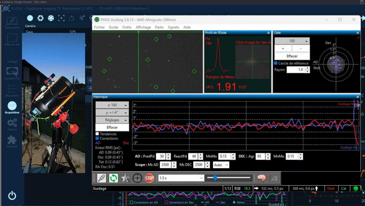 Hello, Alors je suis loin d’être un expert en guidage mais j'ai considérablement réduit mon regard sur les RMS J'ai eu du 0,5 sur l'Askar mais des étoiles crades, et du 1.5 sur le Newton 150/750 avec des étoiles bien rondes et un FDC propre Comme disait l'autre: vas comprendre Charles ... (ref vieille pub PMU) -