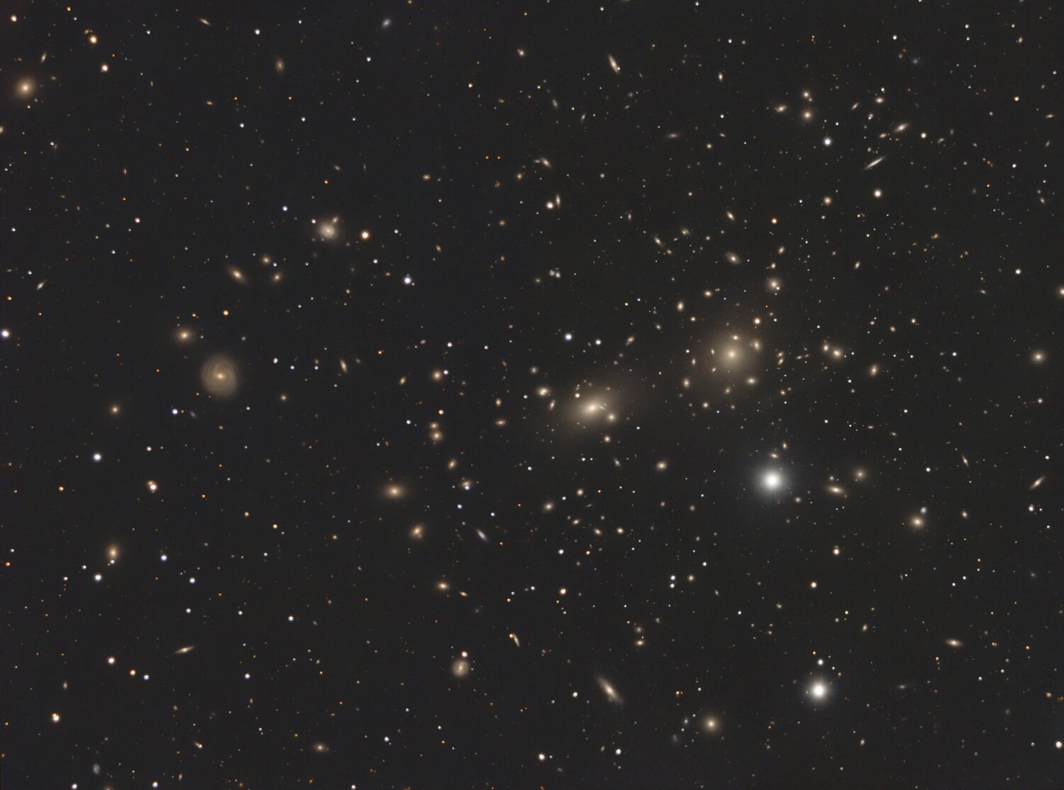 Bonjour à tous, J'ai eu la chance d'avoir pas mal de nuits dégagées cette semaine, juste un peu de vent mais j'ai sorti ma bâche anti vent 🙂 qui m'a pas mal aidé, Je me suis attaqué (ce n'est pas la première fois) à Abell 1656 dans la chevelure de Berenice. Avec une focale de 1580mm, j'ai du faire 2 tuiles. Voici les parametres de prise de vue : C8 + réducteur 0.63 + ASI 294MC Pro + IrCut sur EQG Guidage lunette Orion 80x400 + ASI 462 Acquisition NINA Traitement SIRIL + GIMP + GraXpert un peu plus de 6h de pose par tuiles avec des pose unitaire de 180s 50DOF Manque toujours un peu de couleurs avec l'ASI294, c'est dommage Ce que j'aimerai bien savoir, c'est la magnitude maximale atteinte sur ma photo et la galaxie la plus éloignée mais je n'arrive pas à avoir ces info. J'ai pourtant essayé avec ALADIN, j'ai vu aussi qu'on pouvait le faire avec ASTAP mais ça ne fonctionne pas, Auriez vous une idéé ? A+ Manuel