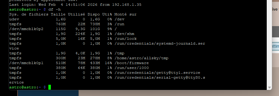 10. oui mais tu prend bien la main à partir d'un PC avec ce type d'adresse : http://192.168.1.33/index.php ou http://allsky.local ?