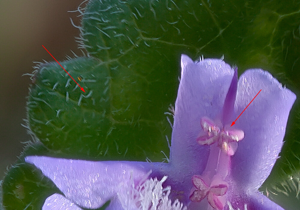 Bonjour les ami(e)s, J'espère que vous allez tous bien. Avec ce beau temps, je suis sorti prendre l'air, et bien sûr, en profiter pour faire de la photo macro. Je vous partage donc une photo faite en macro "traditionnelle" au taux de 1/2 d'une petite fleur mauve de mon jardin. Prises de vue : Image stackée à partir de 38 photos dans Hélicon focus avec la méthode C et lissage à 1. Par contre, j'ai un problème de stabilité de trépied. Il bouge quand je touche à la molette de réglage de la distance du rail de focus stacking. On peut bien voir dans cet agrandissement le dédoublement des "poils" et du haut de la fleur dû au trépied qui continue à bouger très légèrement, même après avoir attendu 5 à 10 secondes, et en macro, même "traditionnelle", ça ne pardonne pas ! Bon, il y a beaucoup plus grave dans la vie, mais je vais devoir acheter un trépied qui soit stable et conçu pour de la macro en extérieur avec un rail macro manuel. Encore des frais Amitiés, FRanck