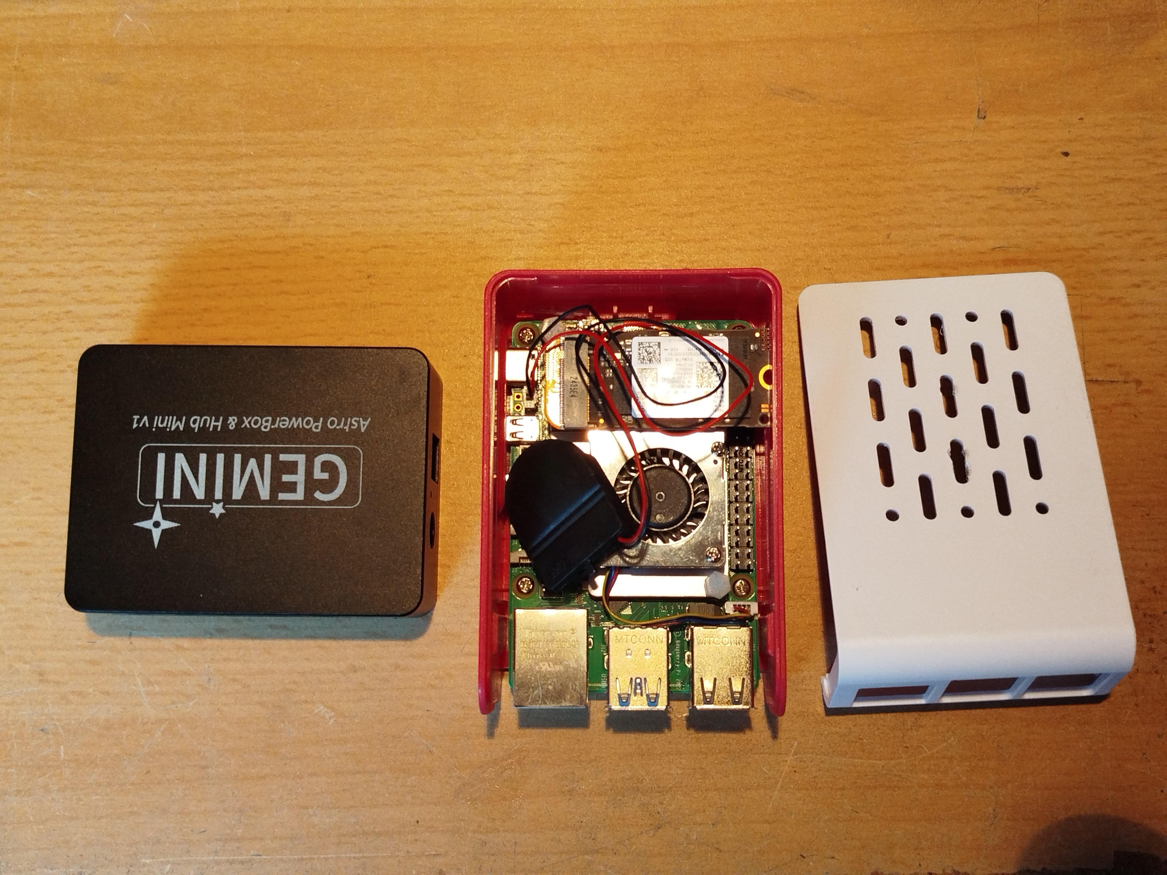 Bonjour, le RPI5 a été commandé chez Ali: kit complet, avec boitier, ventilo, boitier pile pour l'horloge RTC, carte support pour un disque nvme, le tout pour 120€ à l'époque (https://fr.aliexpress.com/item/1005008153885728.html?spm=a2g0o.order_list.order_list_main.65.42a61802HSwXPM&gatewayAdapt=glo2fra) Powerbox Gemini: https://fr.aliexpress.com/item/1005008276446134.html?spm=a2g0o.order_list.order_list_main.50.42a61802HSwXPM&gatewayAdapt=glo2fra nvme: https://fr.aliexpress.com/item/1005010545783017.html?spm=a2g0o.productlist.main.5.1a73I93MI93MwO&algo_pvid=55113b44-06d5-42f8-8651-d84cbda31ac7&algo_exp_id=55113b44-06d5-42f8-8651-d84cbda31ac7-4&pdp_ext_f={"order"%3A"112"%2C"eval"%3A"1"%2C"fromPage"%3A"search"}&pdp_npi=6%40dis!EUR!45.59!39.39!!!366.20!316.39!%40211b653717707172773912532ec9ec!12000052772787518!sea!FR!176377362!X!1!0!n_tag%3A-29919%3Bd%3Abff5a9ed%3Bm03_new_user%3A-29895%3BpisId%3A5000000200859822&curPageLogUid=V2BZl6Wr7iNm&utparam-url=scene%3Asearch|query_from%3A|x_object_id%3A1005010545783017|_p_origin_prod%3A Pour la partie logiciel, je vais poster un document, après mise à jour, qui décrit la marche à suivre. En attendant, je peux te l'envoyer en MP. -