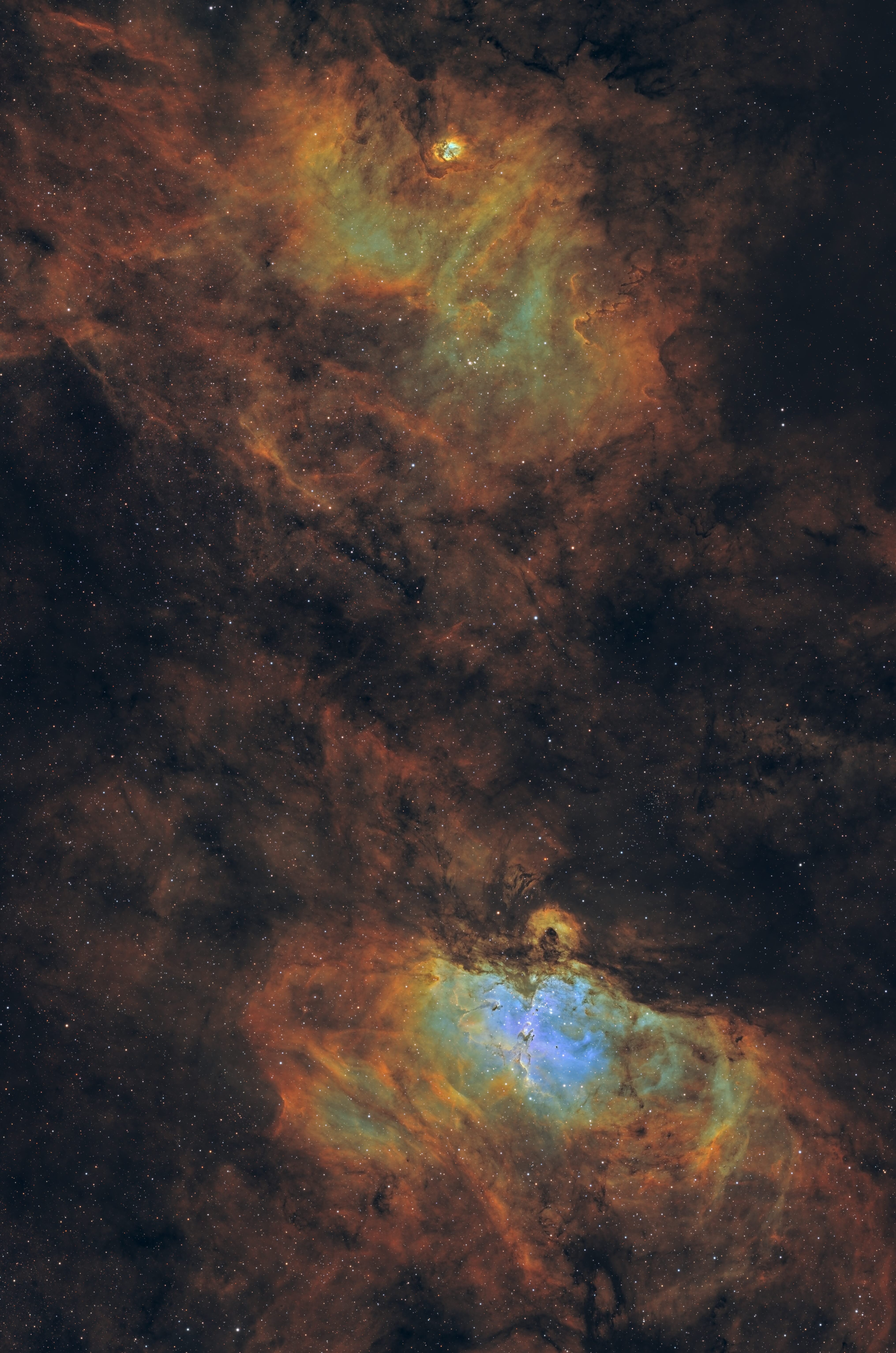 Bonjour à tous, Je vous propose mon interprétation SHO de ce grand classique du ciel d’été. L’astrophotographie est toujours étonnante : en voyant la 1° brute, on se dit que le traitement va être facile tellement le signal est important. Et puis pas du tout 🤣 Un vrai challenge que ce mixage SHO pour équilibrer les couches et obtenir un rendu esthétique. L'acquisition date du début d'été dernier avec mon setup Portugais. La full et les détails d'acquisition sont sur ma page astrobin. https://app.astrobin.com/u/tazdevil71?i=79w1g8 Bon ciel à vous Et la version HOO pour un rendu plus naturel (mais moins de nuance : le beurre, la crémière, toussa ...)