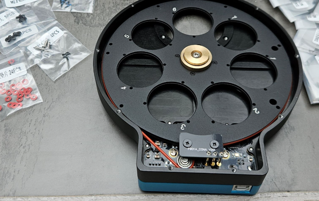 https://app.astrobin.com/forum/topic/165268/equipment/review-touptek-36mm-lrgb-and-sho-filters Juste la conclusion, si tu n'as pas envie de tout lire : Le capteur, c'est le même partout, donc c'est la partie logicielle qui fait la différence, et elle est au point maintenant (depuis un moment). Le matériel est livré sans notice et tout démonté, mais on trouve des tutos sur le net et on est plein à avoir déjà monté tout ça, donc il te suffira de poser tes questions pour obtenir de l'aide... Pour la roue à filtres, précise dans ta commande que tu veux recevoir le dernier modèle à jour, avec l'élastique qui fait le tour de la roue, comme sur la photo de leur notice de montage (friction sur un galet) : Car j'ai reçu un vieux modèle, avec l'élastique qui doit passer dans des rouages, et c'est bien pénible à retirer, puis à remettre, quand on doit retirer la roue (pour la visser sur la plaque de tilt et/ou la caméra : les petites vis sont derrière !). Avec l'élastique qui fait le tour de la roue, tu l'enlèves et tu la remets, c'est bien plus simple (et sûrement plus durable). (ça, c'est ma RAF !) Mis à part ça, quand c'est monté, ça marche très bien. Autre détail à noter, éventuellement : ils n'ont pas de driver pour Sharpcap, donc si tu utilises ce logiciel (comme moi), prends le driver de chez Altair (le matos est le même, seuls l'informatique change, donc peu importe la marque). C'est ce que je fais et ça fonctionne très bien. Si tu utilises NINA, rien à signaler... Voilà -
