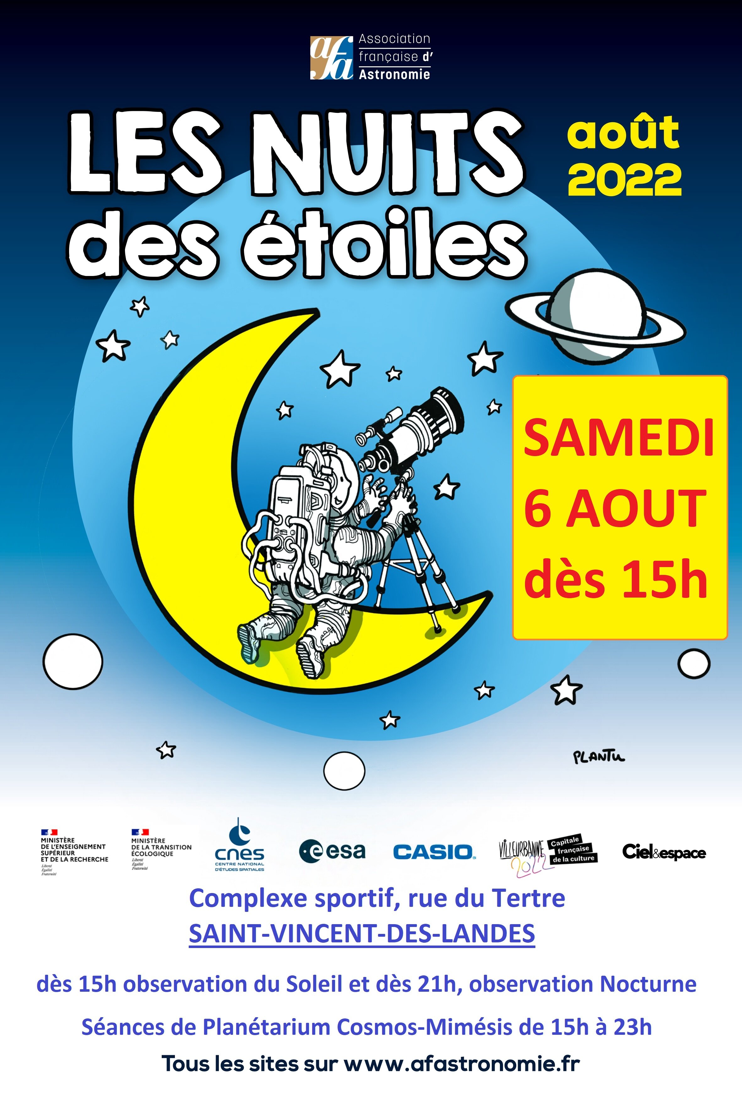 l'association Les Etoiles de la Mée propose un après-midi et Soirée, dans le cadre des Nuit des Etoiles , cette année à Saint-Vincent-des-Landes.