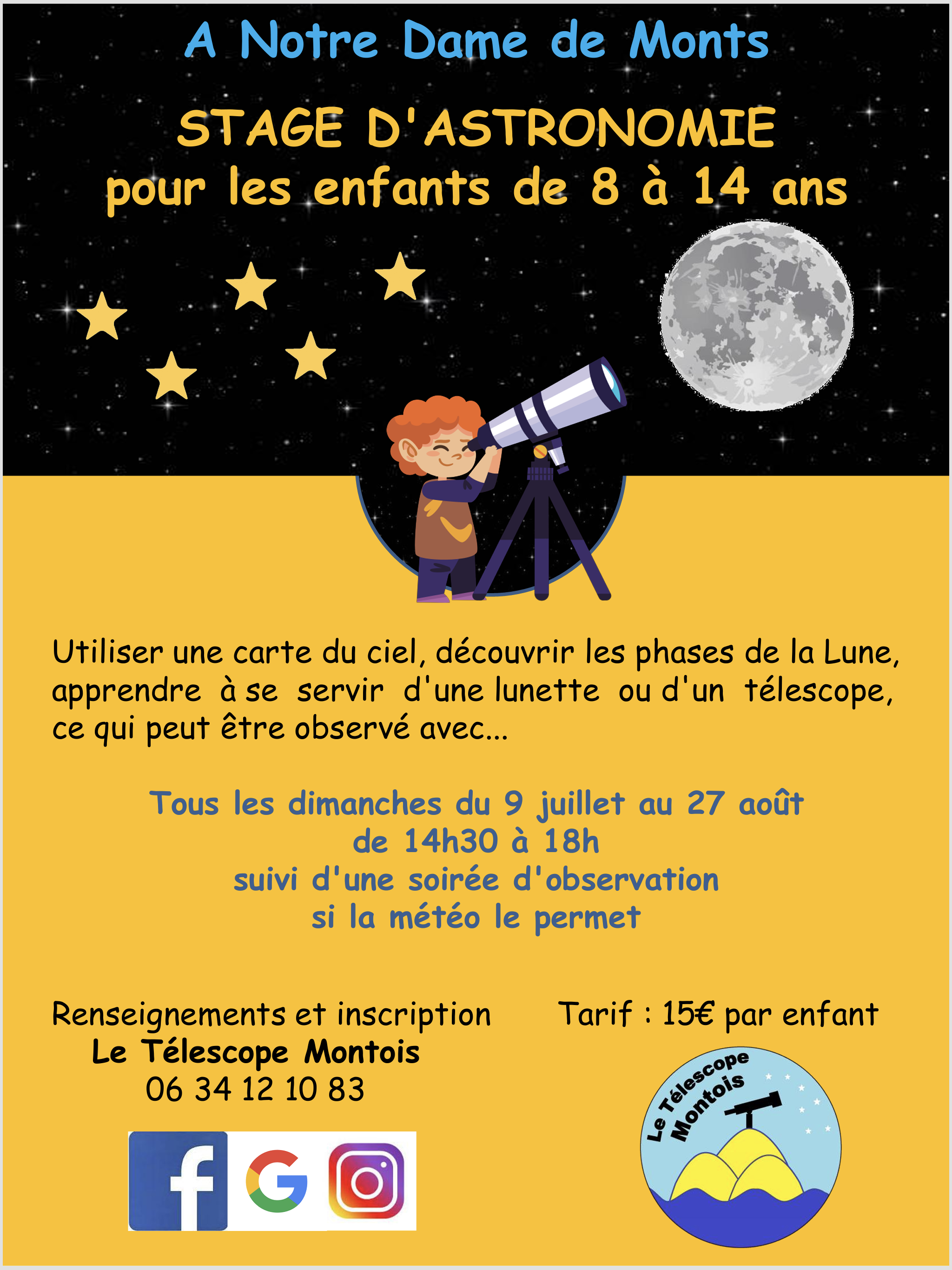 Stage d’astronomie de 8 à 14 ans à Notre-Dame-de-Monts