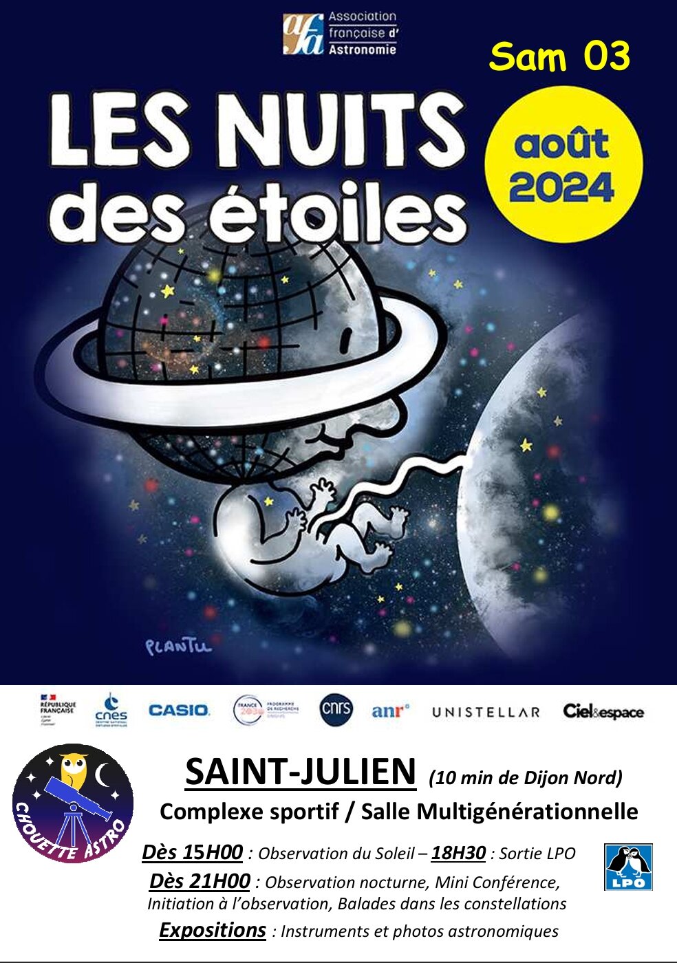 Venez découvrir les merveilles du ciel et échanger, lors d’observations, de conférences et d’animations, avec les astronomes passionnés de l’association Chouette Astronomie.