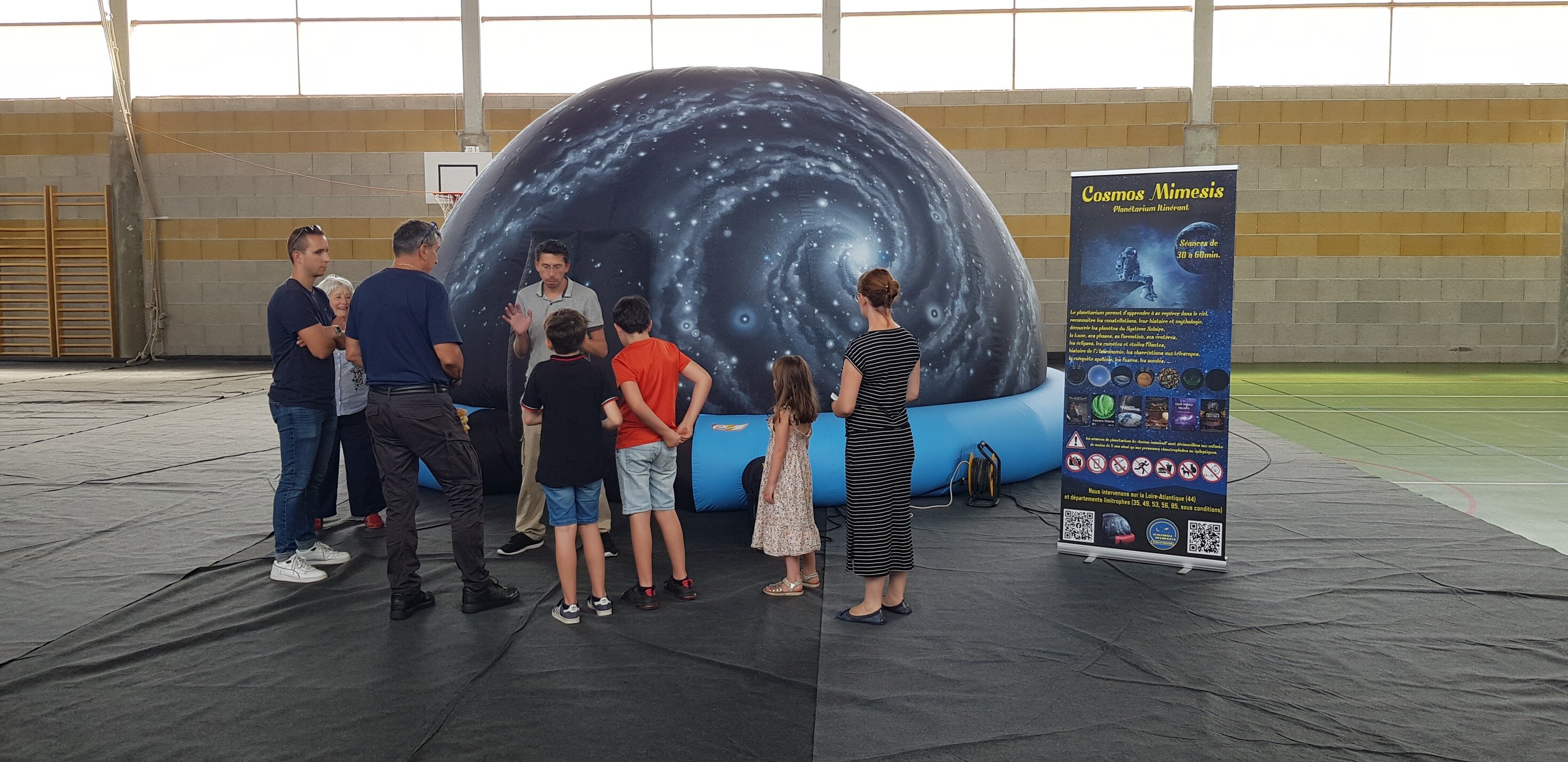 avec le concours du Planétarium Itinérant Cosmos Mimesis qui proposera 3 séances (inscription sur place, séances à 21h, 22h et 23h, participation libre)