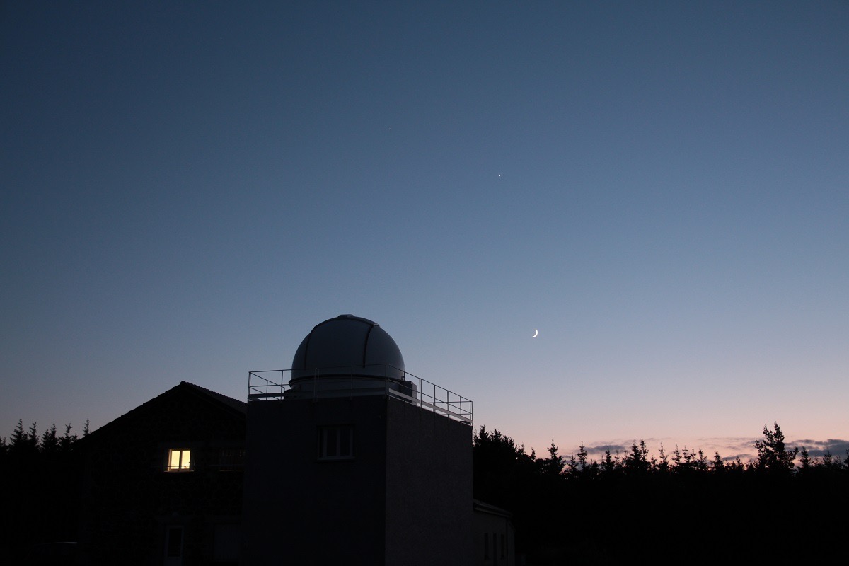 L'Observatoire Hubert Reeves situé sur un plateau à 1080 m d'altitude, dans le Parc Régional des Monts d'Ardèche, offre une vue dégagée sur 360°, à l'écart de toutes pollutions lumineuses.