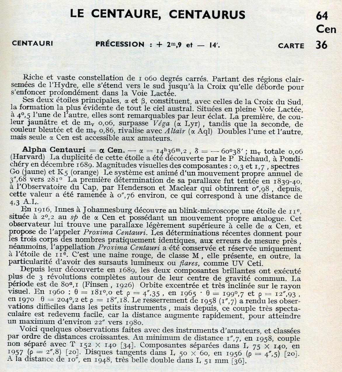 Attention' date=' Jibé, on dirait que tu penses qu'Alpha Centauri s'appelle Proxima. C'est faux. Alpha Centauri, étoile de première grandeur, la troisième plus brillante à l'oeil nu, s'appelle parfois Toliman. C'est une étoile double. Et puis, à plus d'un degré de là, il existe une petite étoile de neuvième ou dixième grandeur, donc invisible à l'oeil nu, que les mesure de parallaxe ont désigné comme notre plus proche voisine (après le Soleil bien sûr), aussi on l'a appelée Proxima. Proxima n'est pas l'étoile de première grandeur que tout le monde voit à l'oeil nu et qui a été cataloguée par Bayer (et ses successeurs) sous le nom d'Alpha Centauri. C'est effectivement un compagnon (lointain) de cette étoile double, qui est donc triple, et je suppose que c'est la raison pour laquelle tu considères que c'est le même chose, mais je pense que tu induis les gens en erreur (en fait je ne suis même pas sûr que tu ne te trompes pas).