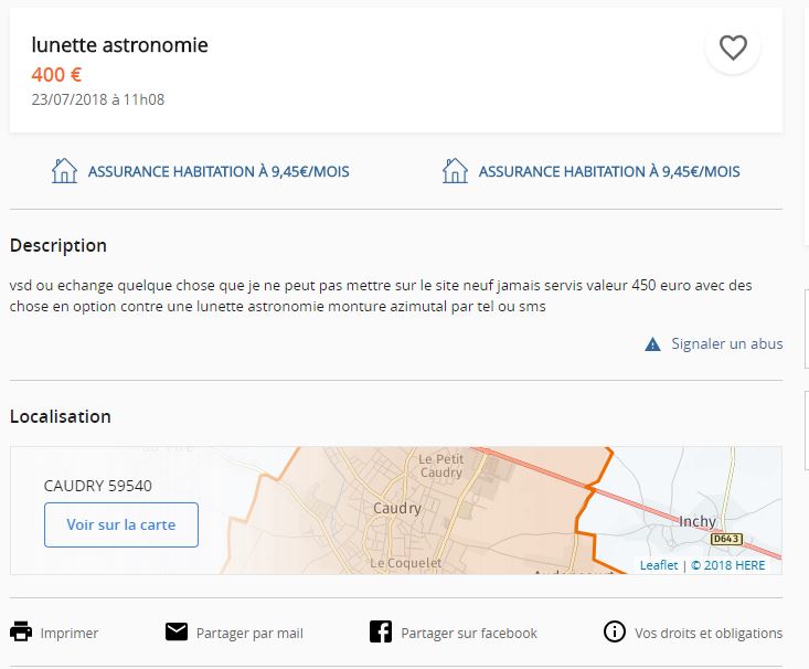 En fait cette demande concerne les annonces en général. J'aimerais que mettre une copie d'écran (en plus du lien direct) devienne une (bonne) habitude.