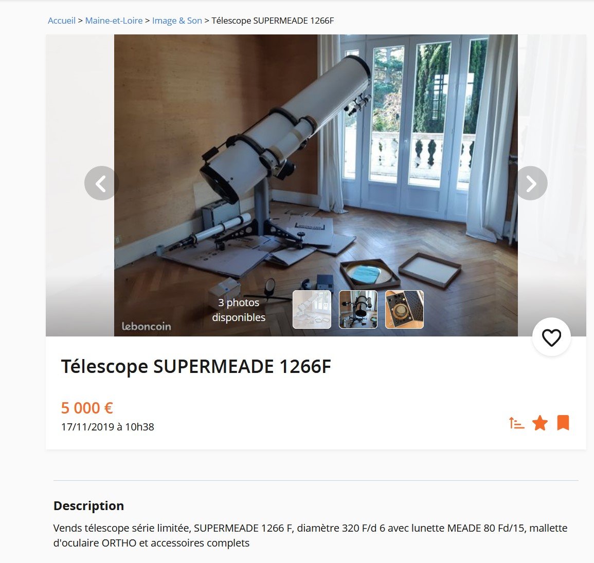 Pour information, en 1982, ce Meade 1266 était vendu neuf en Amérique 1.975 $