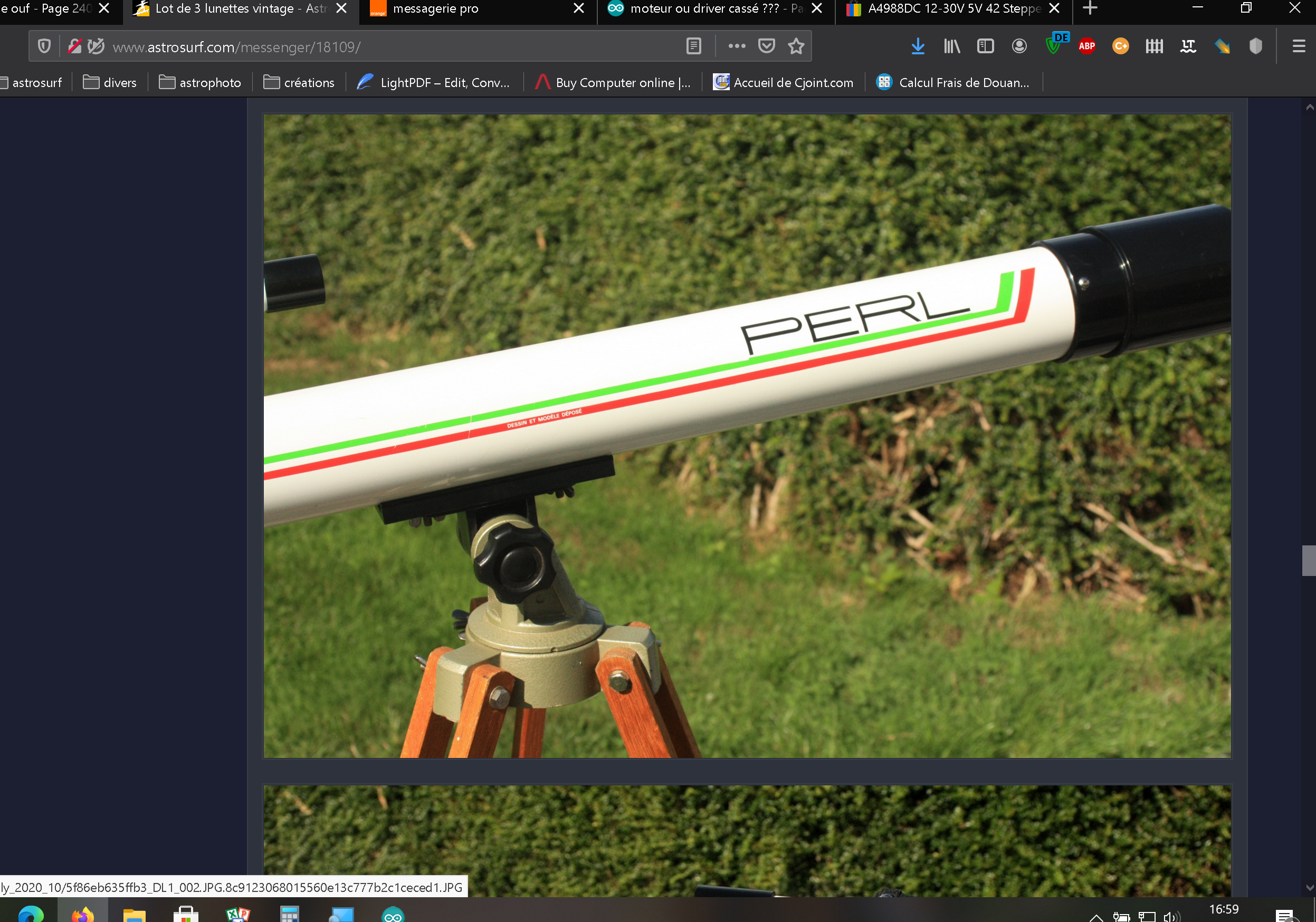 mais ce qui m'a surpris c'est que le vendeur http://www.astrosurf.com/annonces/ventes/lunette-vintage-perl-vixen-r17955/  la vend 20 € plus cher :s!pomoi!c'est pour ça que je vous mets cette annonce dans annonce de ouf