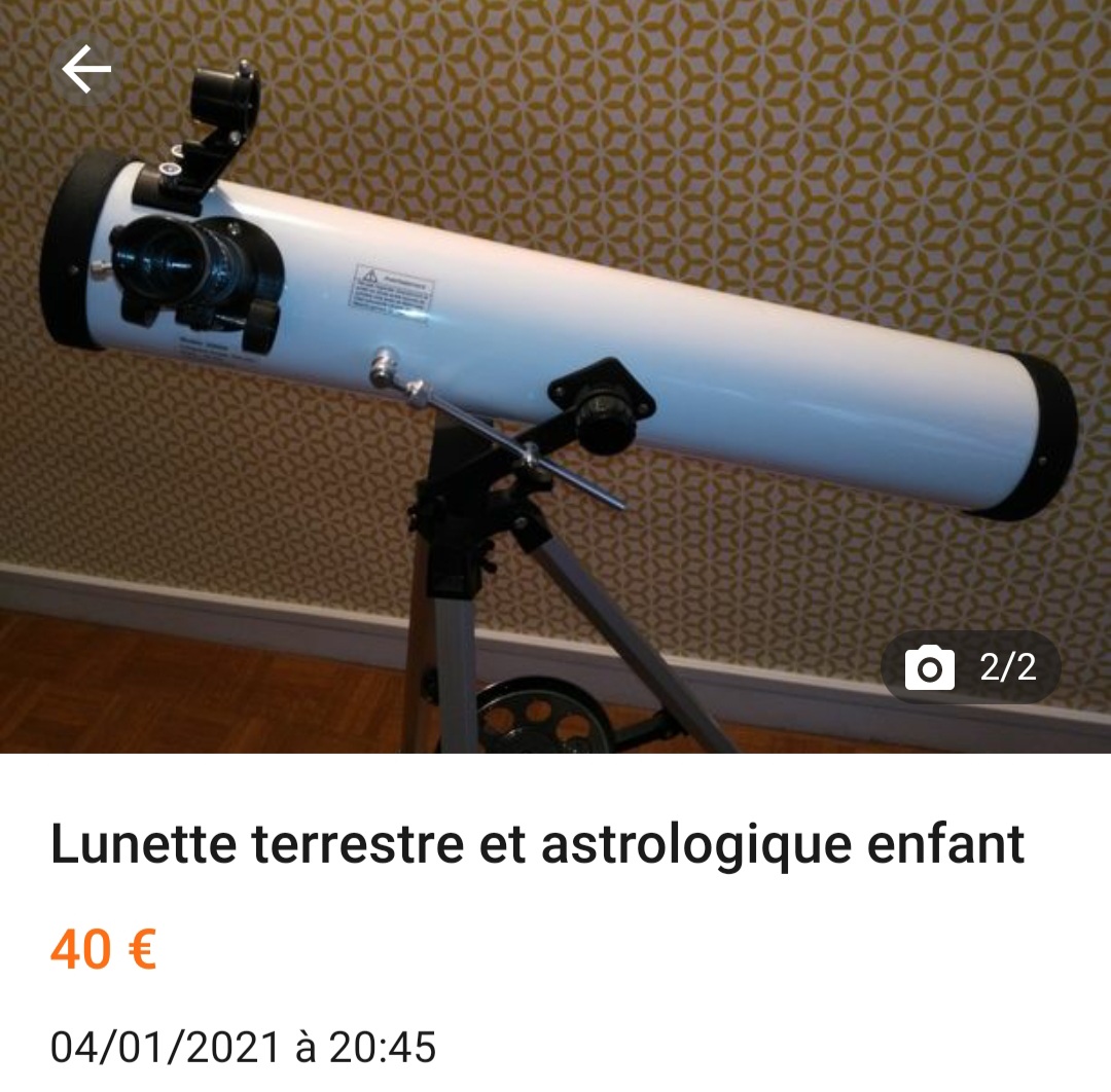 En même temps, c'est logique. Vue que ce n'est pas une lunette astronomique. Pauvre enfant, qui n'a pas eu l'occasion de découvrir les planètes et la lune. Il est forcément déçu.