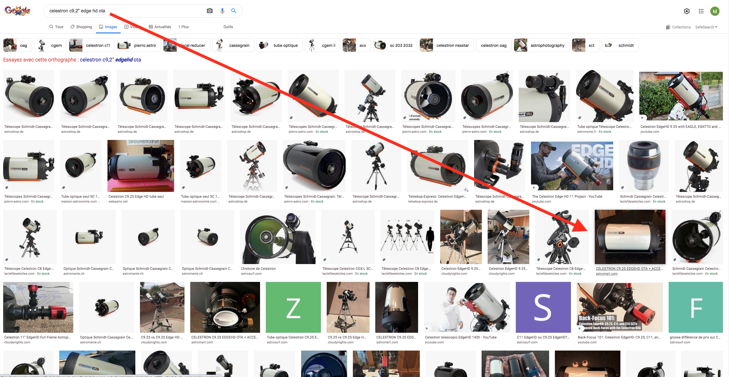 ici j'ai tappé : celestron c9,2" edge hd ota