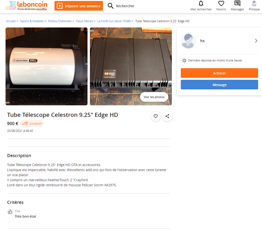 Sur ce site le C14 est dans les occasions à vendre avec plein d'autres trucs : https://www.tele-rapid.com/product-page/celestron-c14-complet