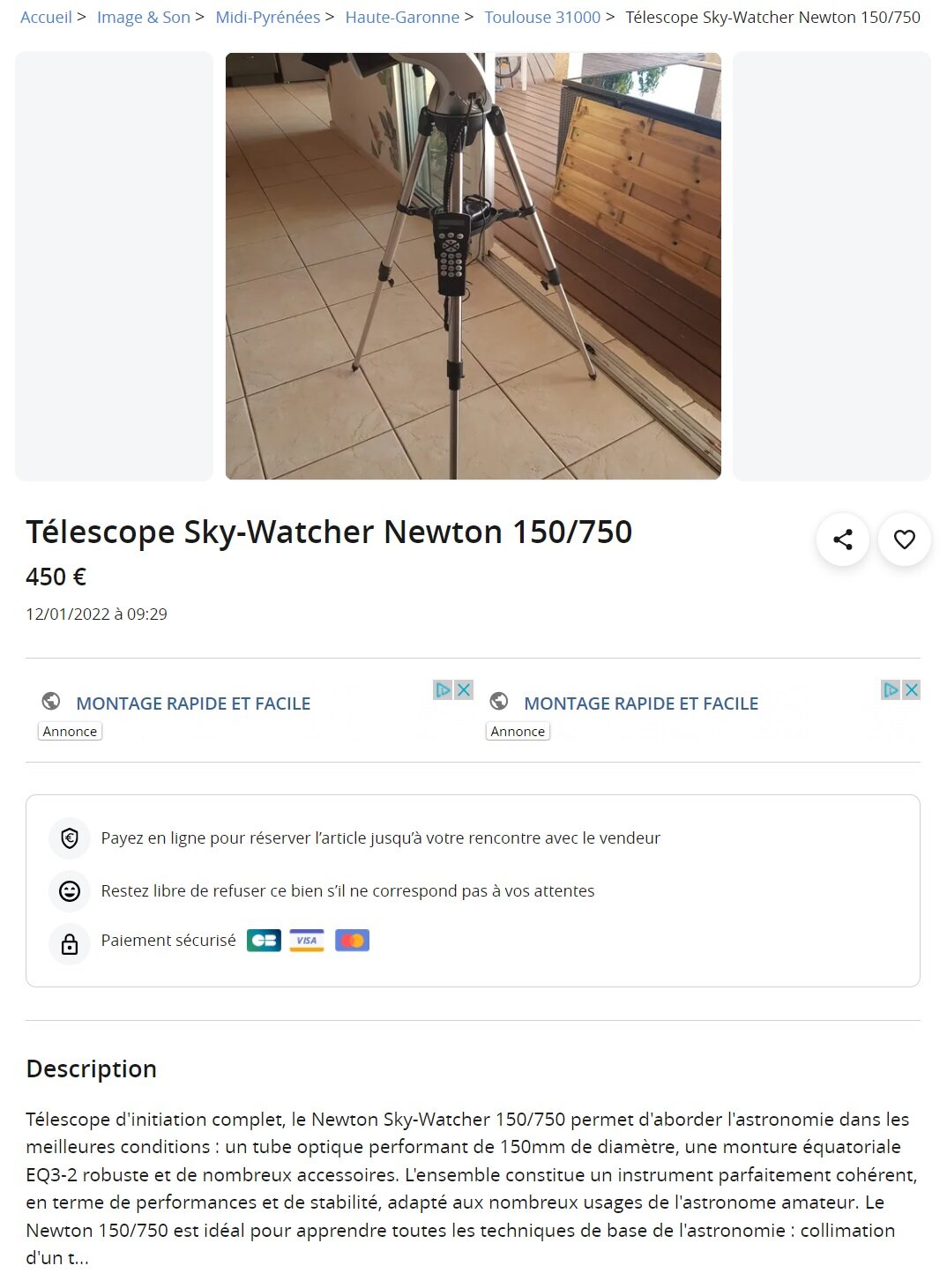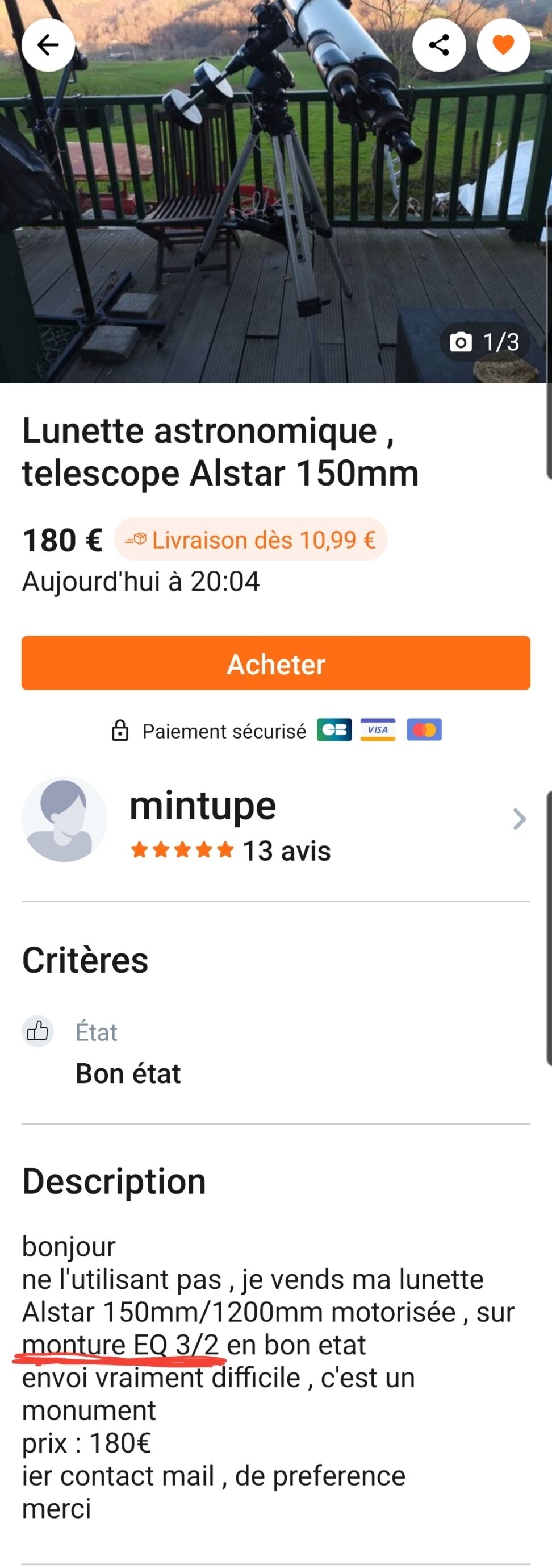 Je ne sais quoi penser de cette annonce : https://www.leboncoin.fr/sports_hobbies/2092490647.htm