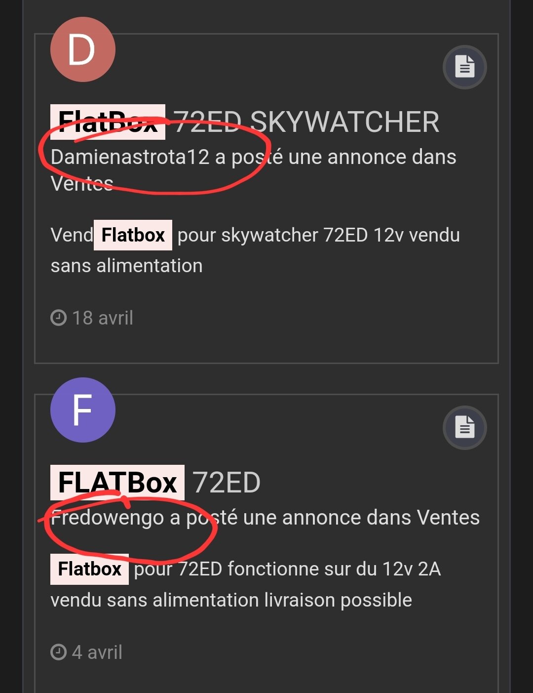 3 pseudos j'ai vu, peut être d'autres que j'ai pas fait attention. Surement pour dissimuler au maximum son bisness. Les annonces se regroupent souvent en double, Fredowengo / Damienastrota12 / Nalla55