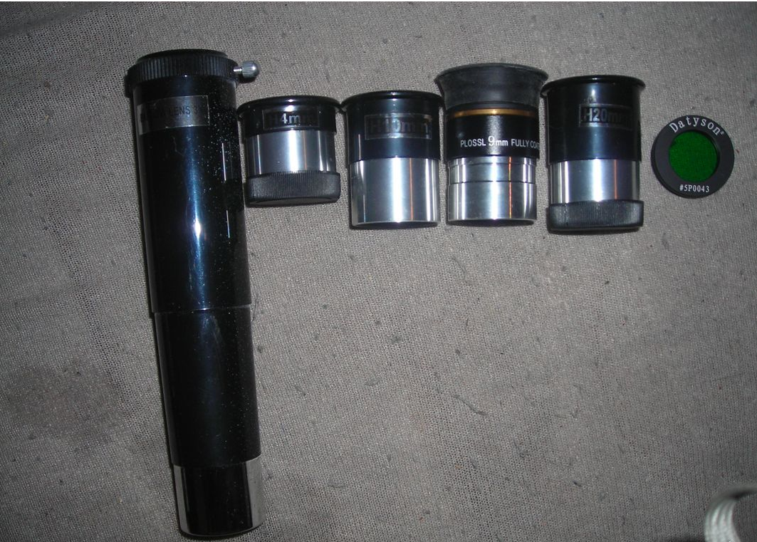 Avec bien entendu sa collection d'oculaires adaptés, un "philtre vert" et les vieilles jumelles crado lavées à grandes eaux encore trempées.