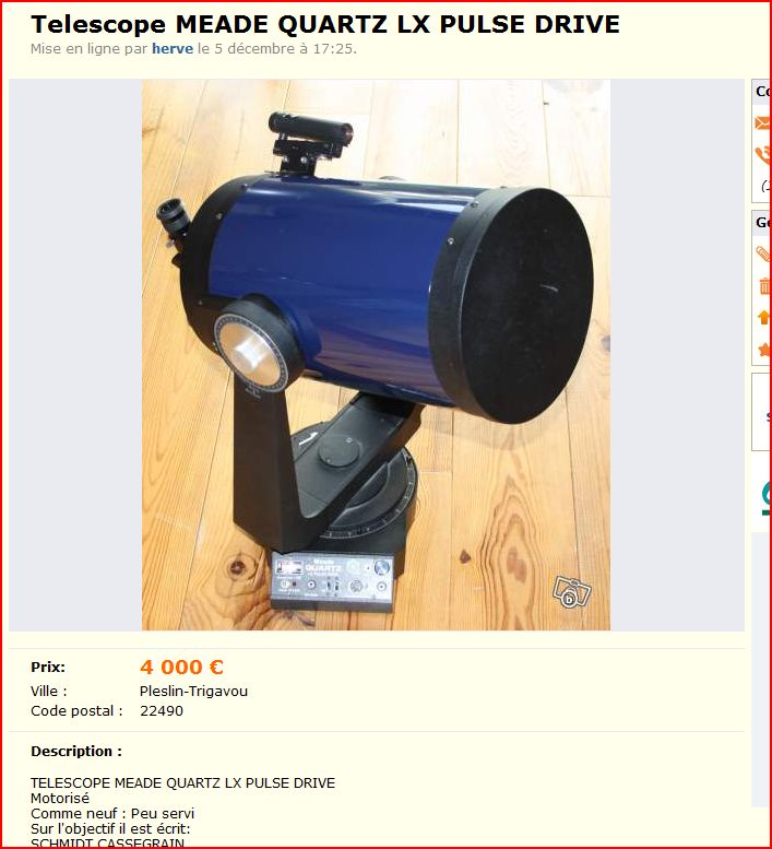 J' adore son argumentation : "télescope a vendre pour observer les comètes . idéal comme cadeau de noel .