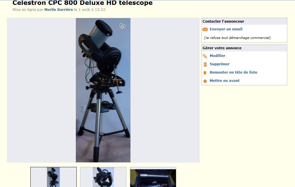 C'est beaucoup trop demandé au Bon coin, je me souviens avoir vu des annonces immobilières en région parisienne clairement racistes (contre nous, Français) et qui ont été publiées. Alors les petites histoires d'astronomes...